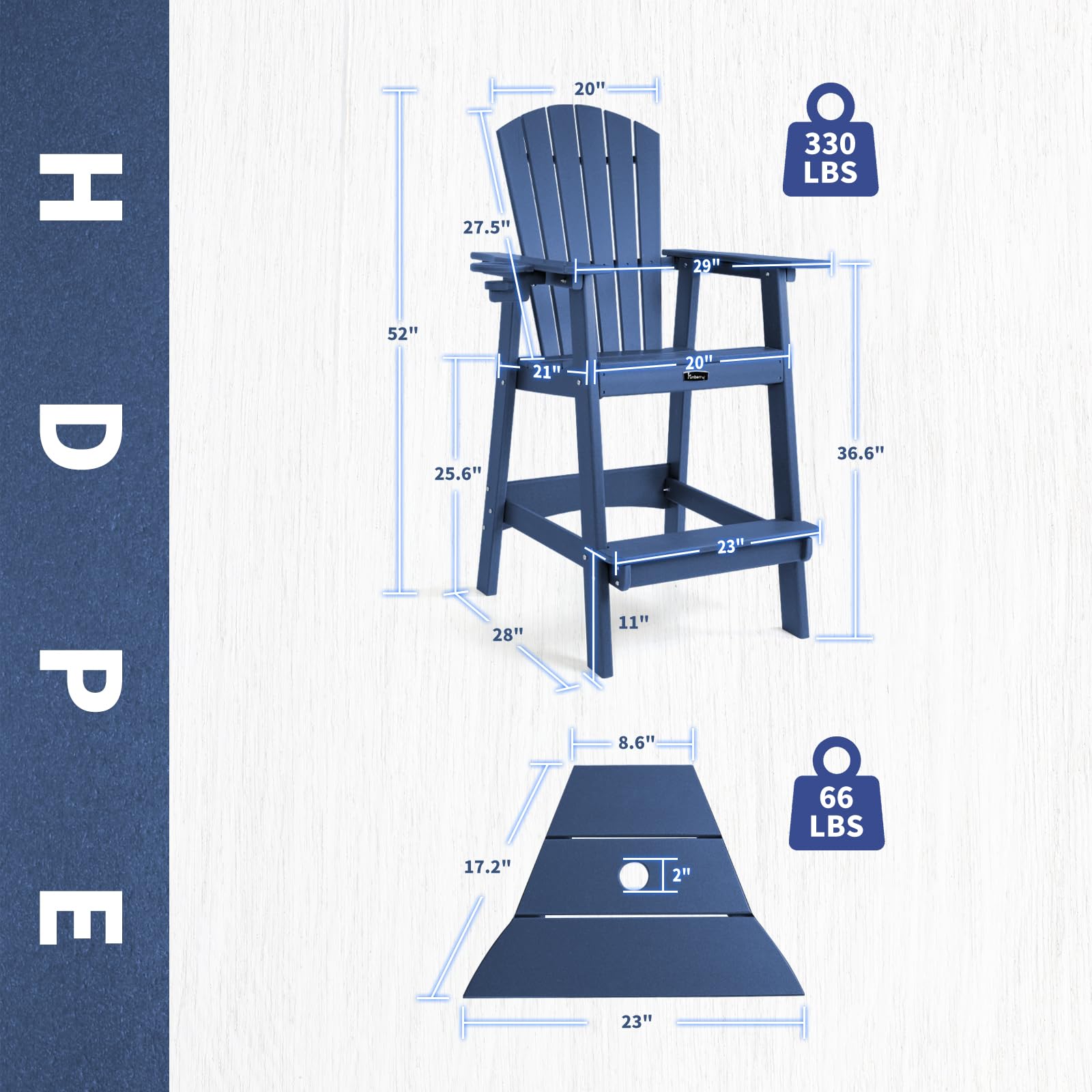 - 【HDPE Heavy Duty Chair】-Compared to the Patio bar chair, HDPE chairs can adapt to various extreme climates, not only have strong load-bearing capacity but also do not require a lot of effort in cleaning. This high chair is a heavy chair, and you don't need to worry about leaving the poly Adirondack chair on the balcony or deck in rainstorm or strong wind weather.