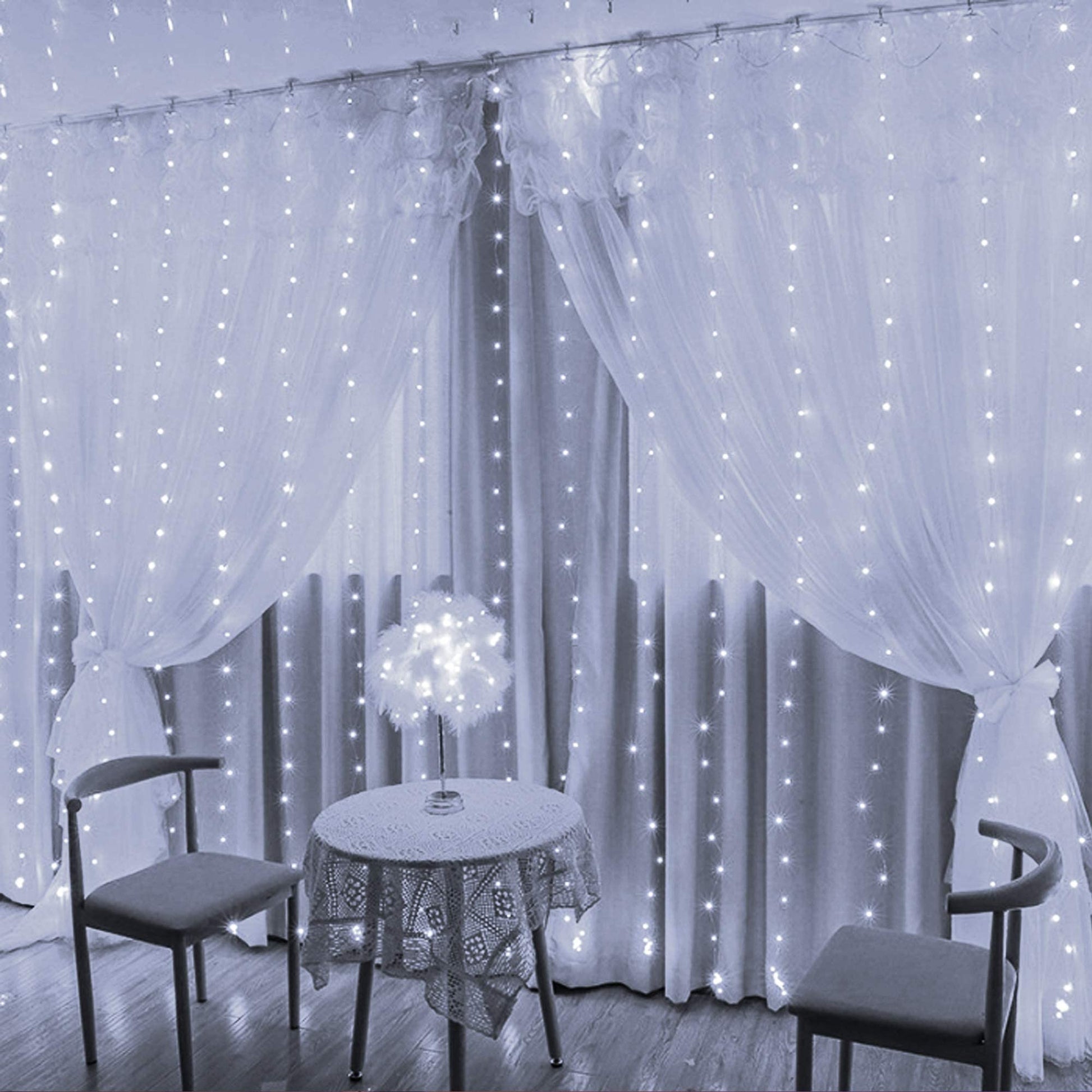 - Perfect decoration: Funpeny window curtain string lights has 300 LED lights, it will bring brightness to your party, and create a festival and a romantic atmosphere. It's a rare decor for Halloween, Christmas, New Year, Birthday party and so on, it also perfect for indoor and outdoor use, bedroom, curtain, Christmas tree, bushes, dormitory, and garden, patio, balcony, or wherever decoration lighting is needed.