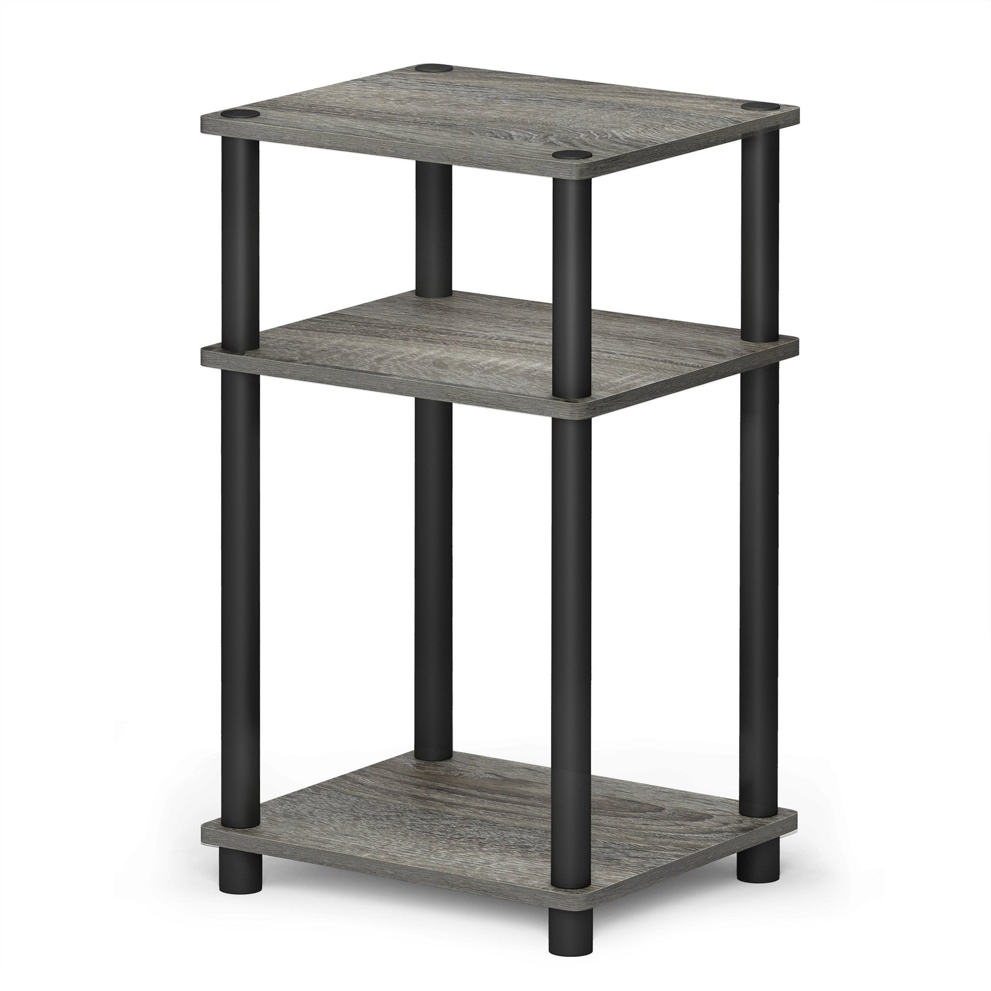 Furinno Just 3-Tier Turn-N-Tube End Table / Side Table / Night Stand / Bedside Table with Plastic Poles, 1-Pack, French Oak Grey/Black