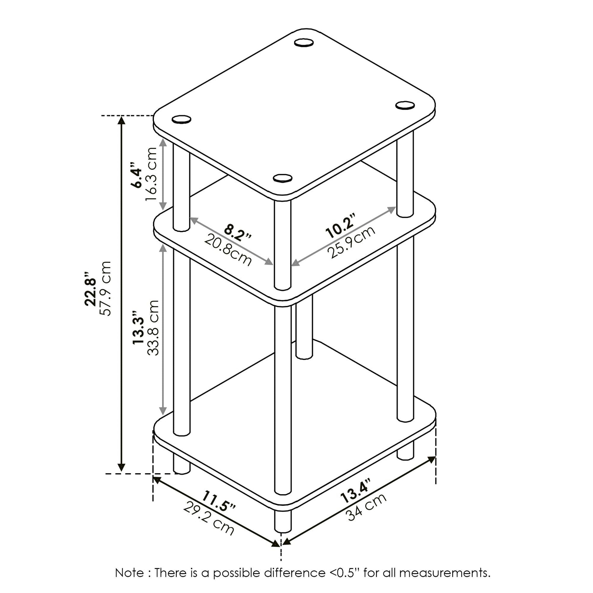 Furinno Just 3-Tier Turn-N-Tube End Table / Side Table / Night Stand / Bedside Table with Plastic Poles, 2-Pack, Columbia Walnut/Black