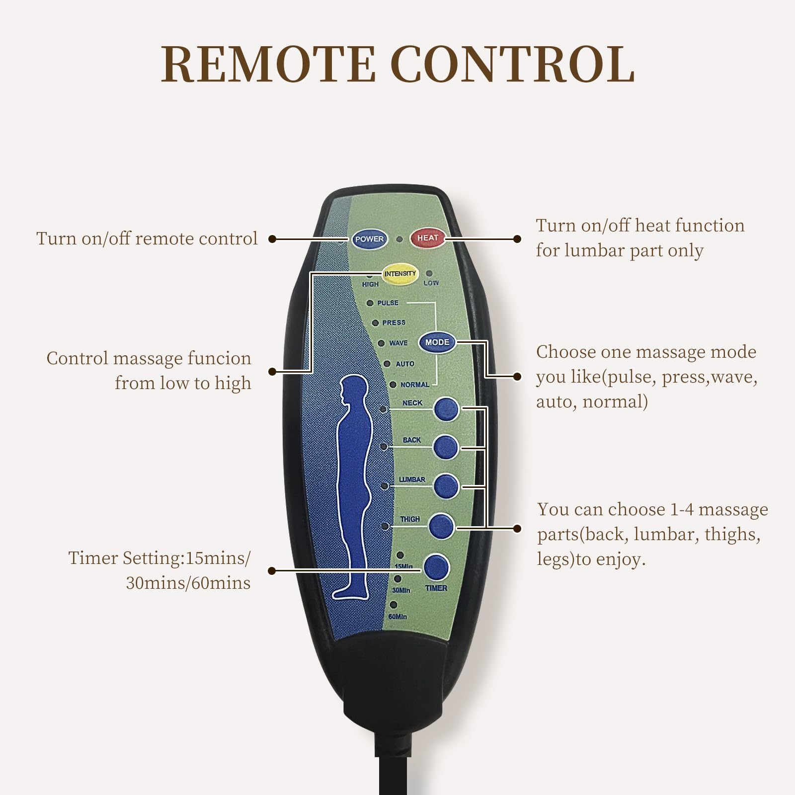 - [Vibration Massage & Heating]: This massage chair for adult with 8 massage points (back, waist, thighs, legs), 2 adjustable vibration strength and 5 massage modes, to be able to choose the desired massage area, intensity, mode and time according to demand. There is also a heating function in the recliner lumbar position, which can promote blood circulation and relax the whole body.