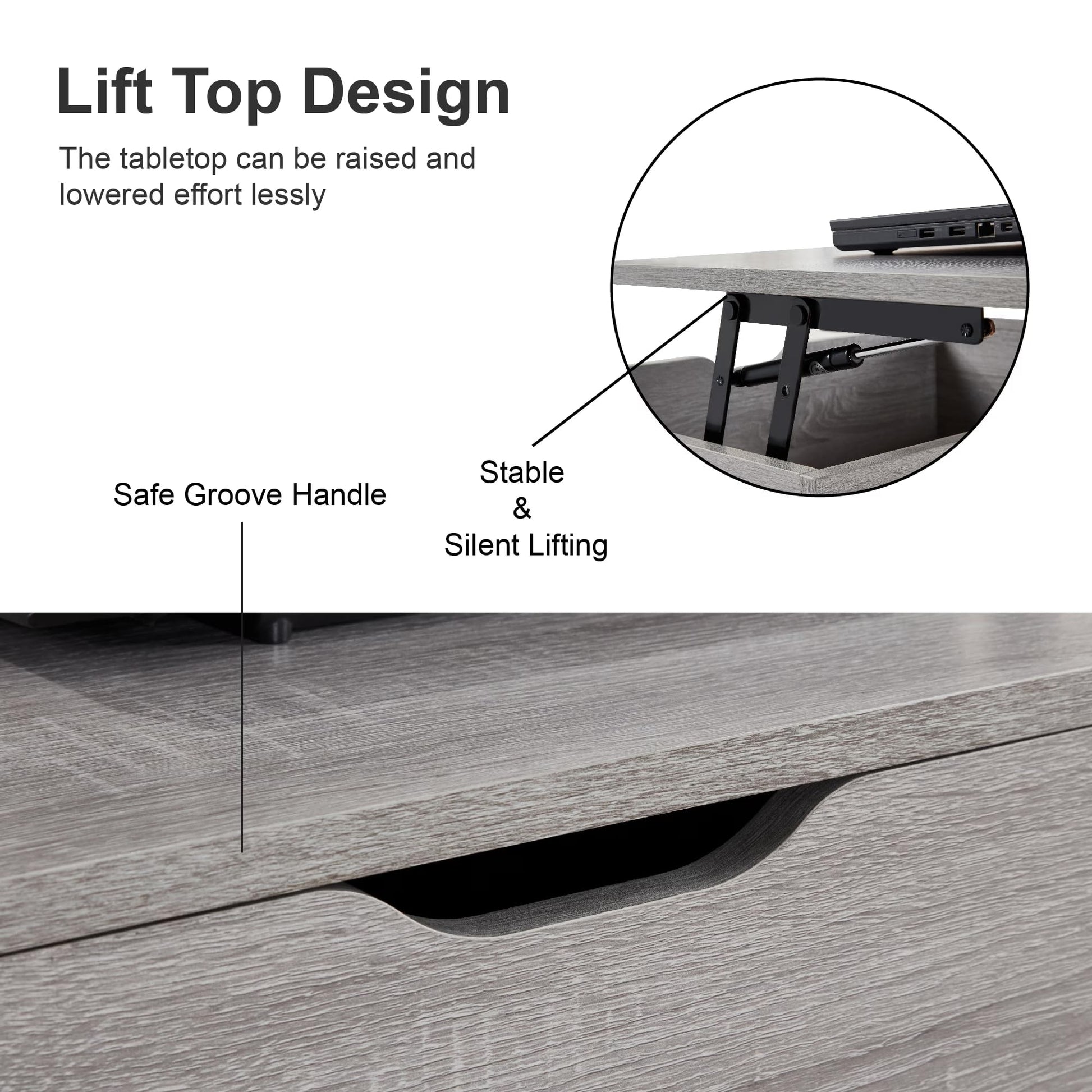 Furrnook 39" Lift Top Coffee Table with Hidden Compartment & Storage Shelf, Multifunctional Desk for Living Room, Home Office, Ergonomic Lift, Ample Storage for Gadgets & Essentials (Gray)