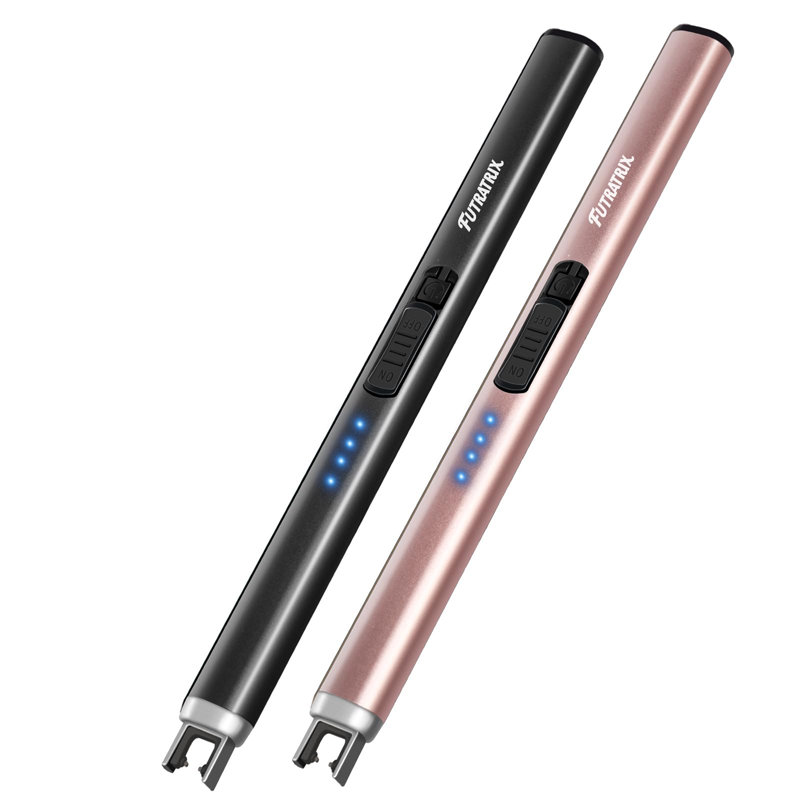 Futratrix Electric Candle Lighters Arc Windproof Flameless USB Rechargeable Lighter for Cooking BBQs Fireworks (2 Pack - Black&Rose Gold)