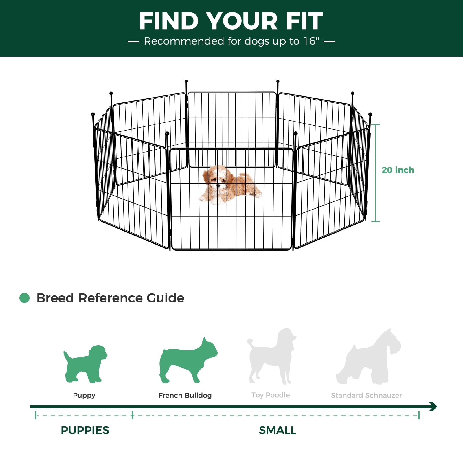 FXW MiniPaws Dog Playpen for Yard & RV Camping, Expandable 20-inch 8 Panels for Puppies and Small Dogs, Portable for Indoor and Outdoor Use