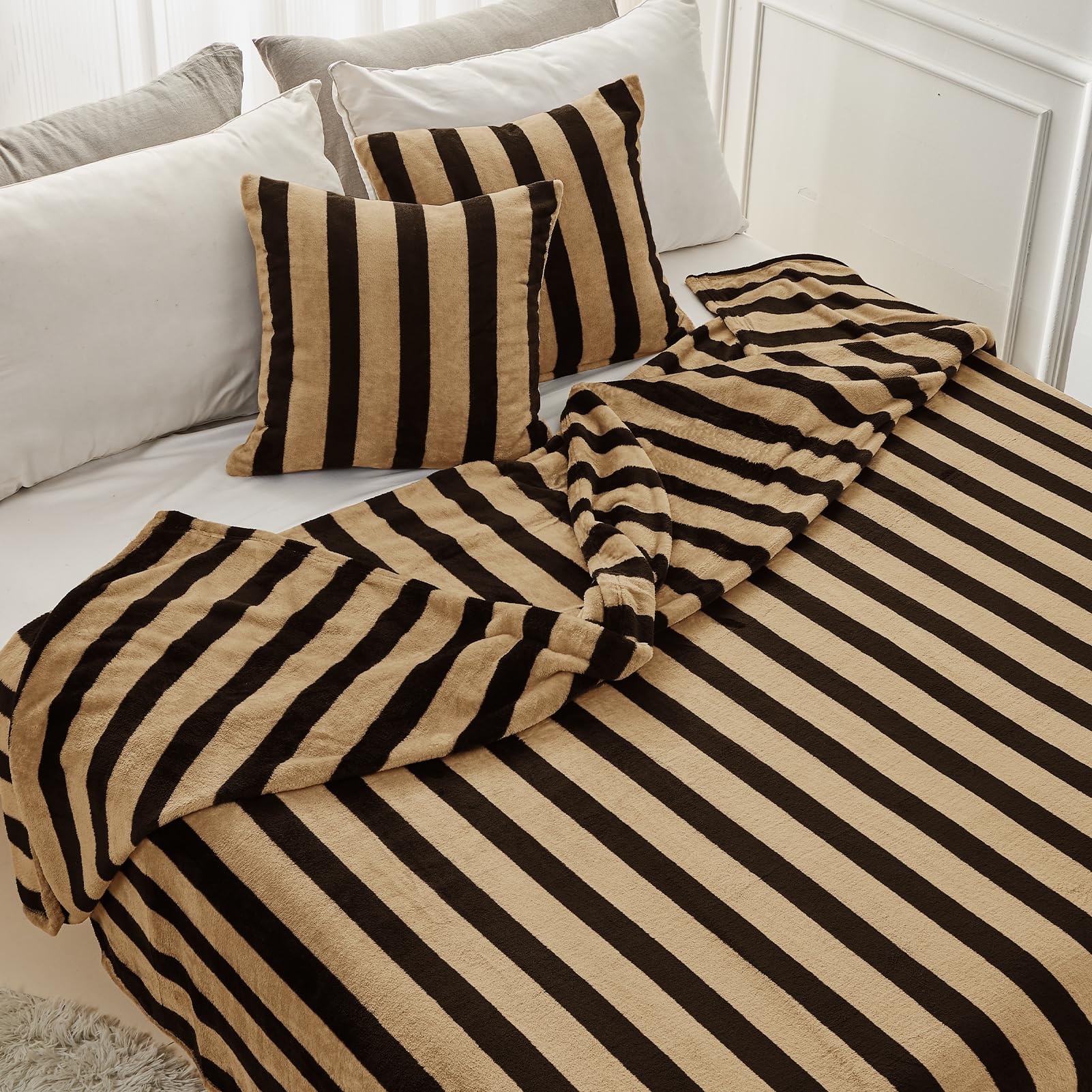 FY FIBER HOUSE Striped Flannel Throw Blanket - Soft Cozy Striped Blanket for Couch, Sofa, or Bed - 50"x60", Black Brown, All Season Use