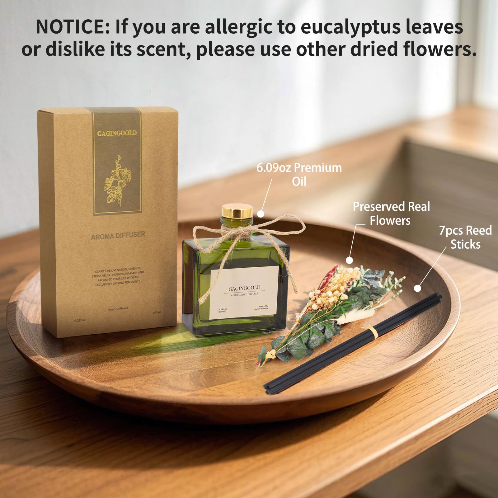 GAGINGOOLD Reed Diffuser, 6.09 oz Sandalwood Scent Diffuser with Sticks & Dried Flowers, 120 Days Long Lasting Reed diffusers for Home, Elegant Fragrance for Bathroom Bedroom Office Decor, air Fresh