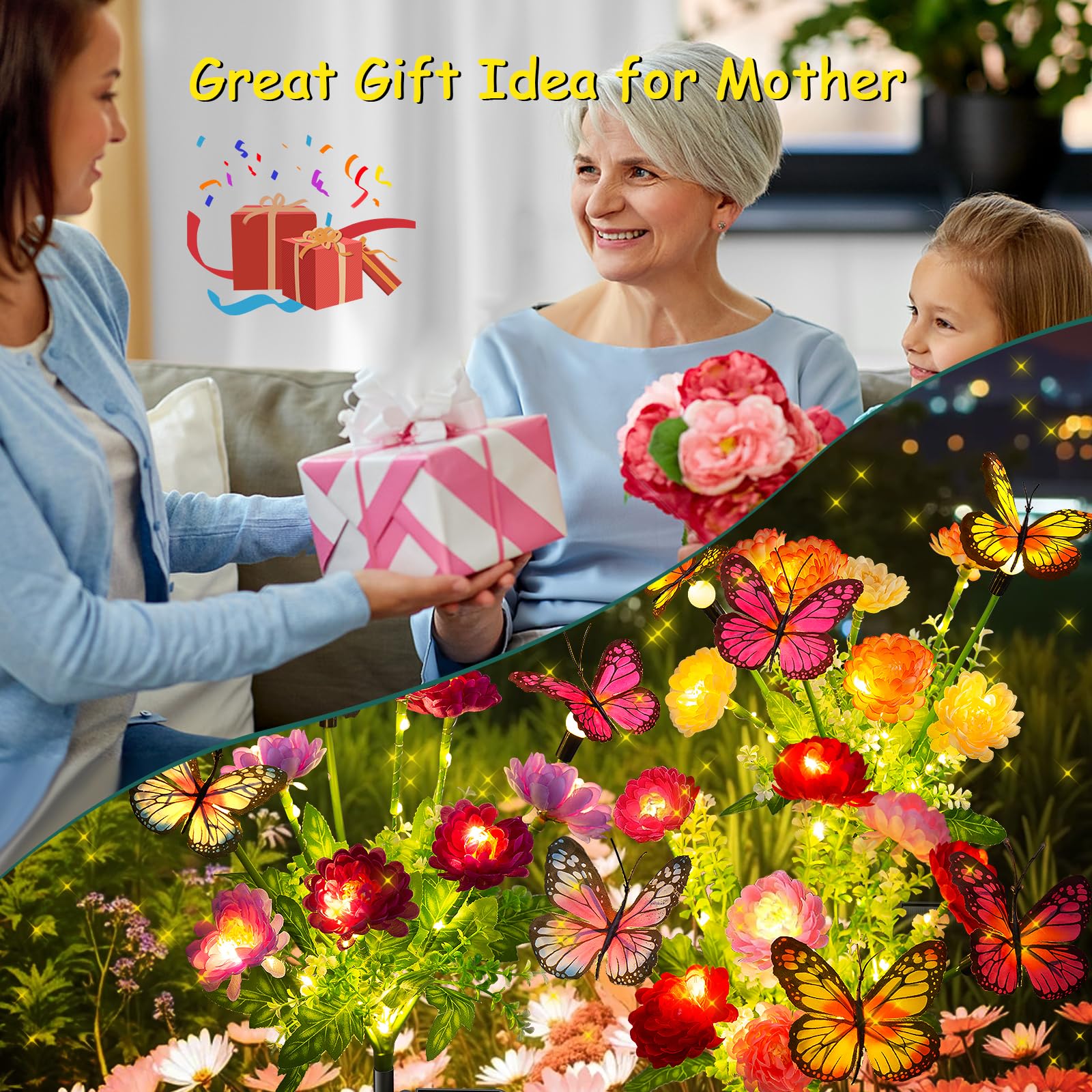 - 【Brighter & Longer-Lasting Illumination】- Unlike typical 12 or 15-LED solar lights, our solar flower lights feature 30 vibrant LEDs and glowing stems & leaves, much brighter than other solar butterfly lights. Solar flowers lights outdoor waterproof is powered by a high-quality 1.2V/600mAh Ni-MH rechargeable battery, those solar lights can illuminate your garden for up to 18 hours on a full charge - lasting much longer than standard outdoor solar lights.
