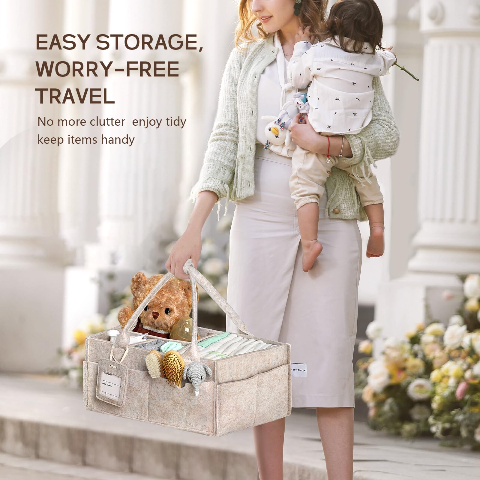 - EXTREMELY VERSATILE DIAPER CADDY: Keep all baby essentials neatly stored in one place! This baby diaper caddy organizer features multiple compartments for diapers, wipes, creams, bottles, swaddles, spare clothes, baby burp cloth and toys—making diaper changes quick and hassle-free.The removable organizer insert allows it to double as a toy storage bin or nursery basket, it's also perfect for on-the-go.