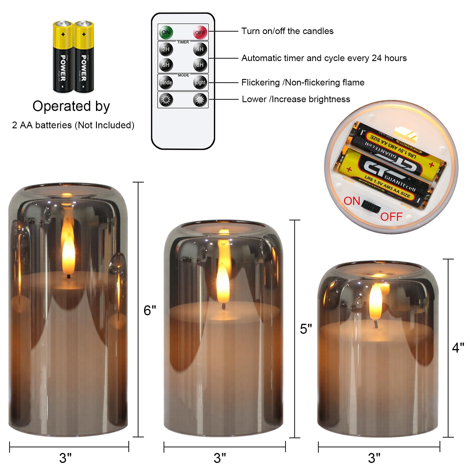 - Package Includes:You will get 3 x black flameless candles(D3”×H 4”5”6”), 1 x remote control,1 x user manual, each candle needs 2AA batteries(package not included). If you have other questions, please contact us in time