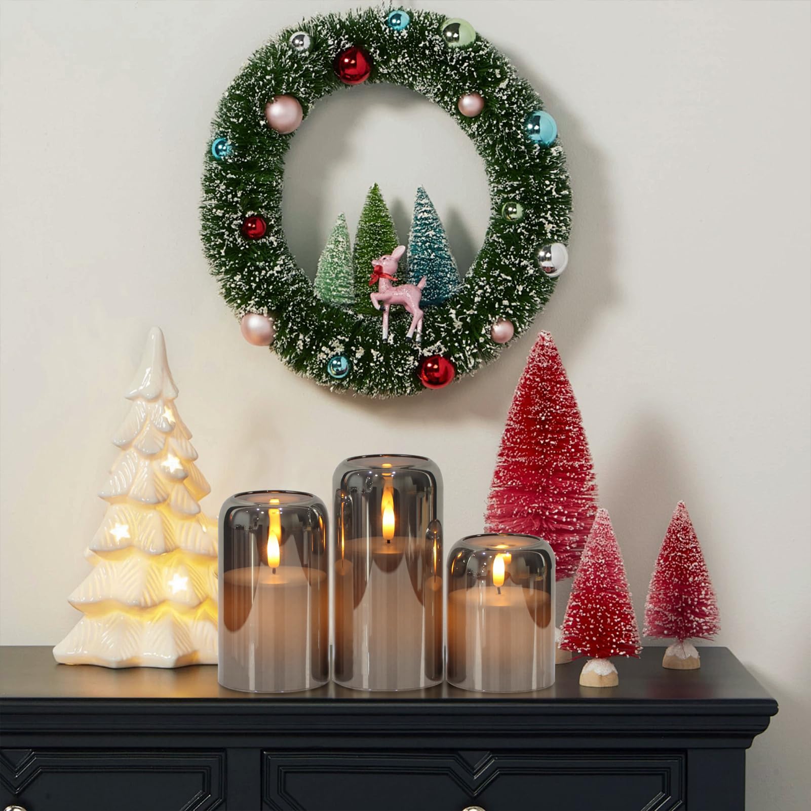 Details: GenSwin Black Flameless Flickering Candles with Remote Timer, LED Battery Operated Candles with Flickering Flame, Glass and Real Wax Pillar Candle for Halloween, Christmas Holida,y Weddin,g Home Decor(Set of 3, black, D3” x 4”5”6”)