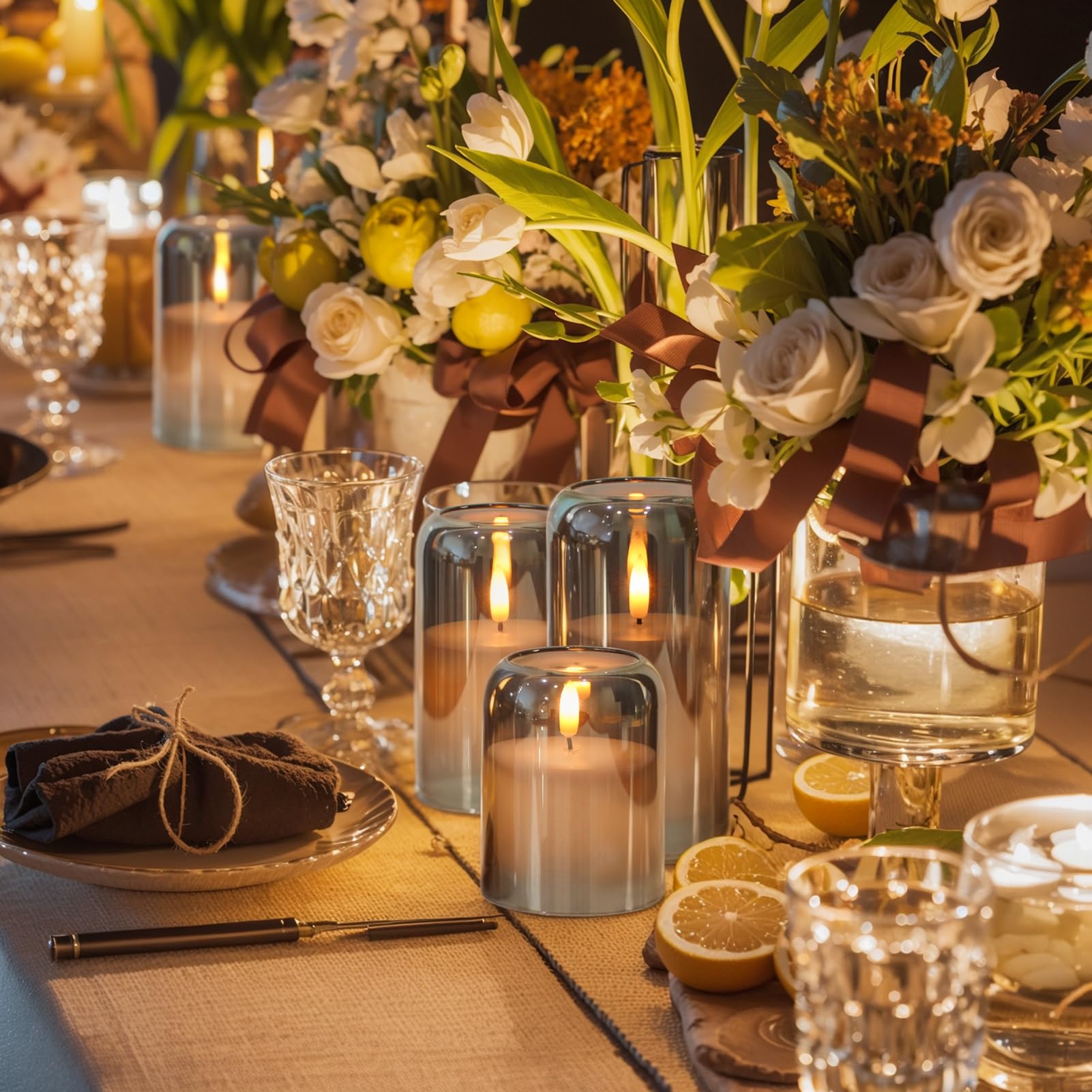 - Flameless Candles with Remote: Slide the bottom switch to turn on all candles, and then use the remote to control all flameless candles. Provide 4 timer modes (2/4/6/8H), select 2 light modes (flicker/steady), and light adjustment to make your home more romantic and warm