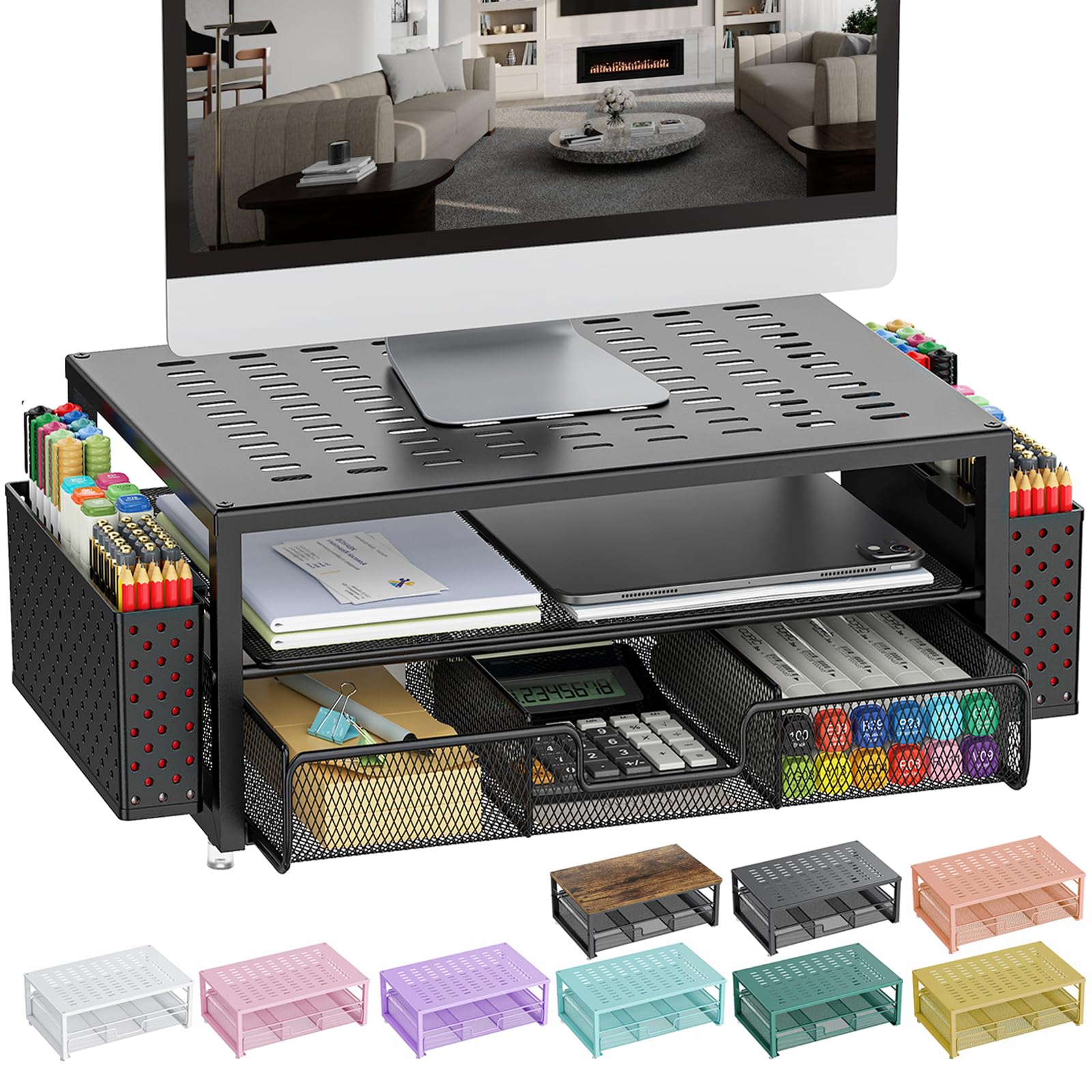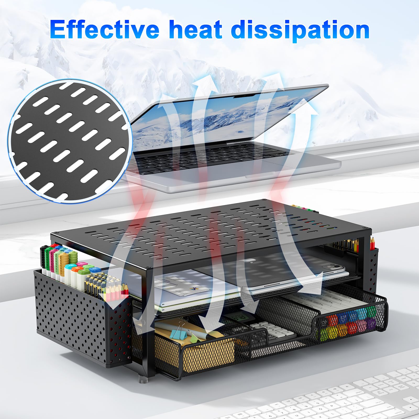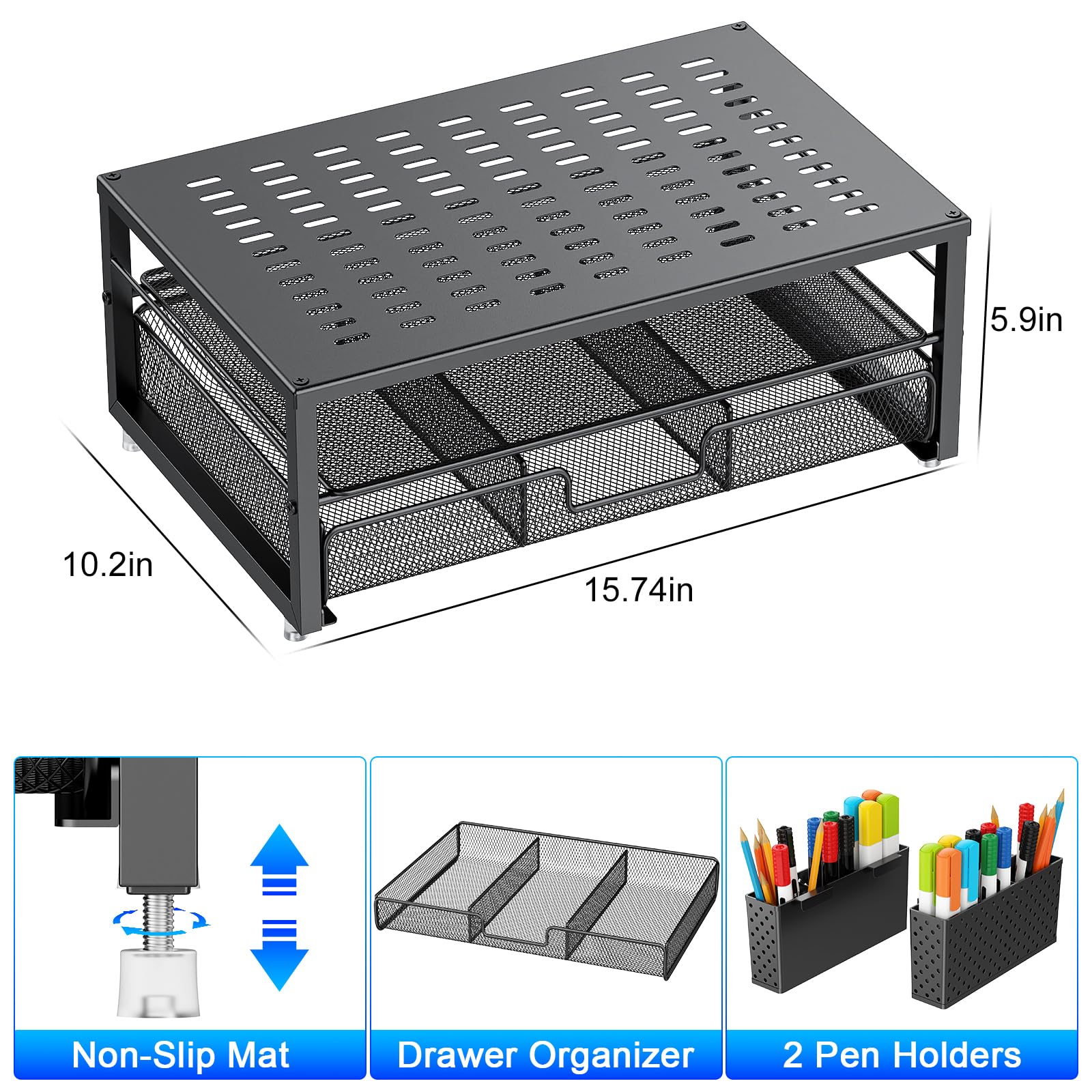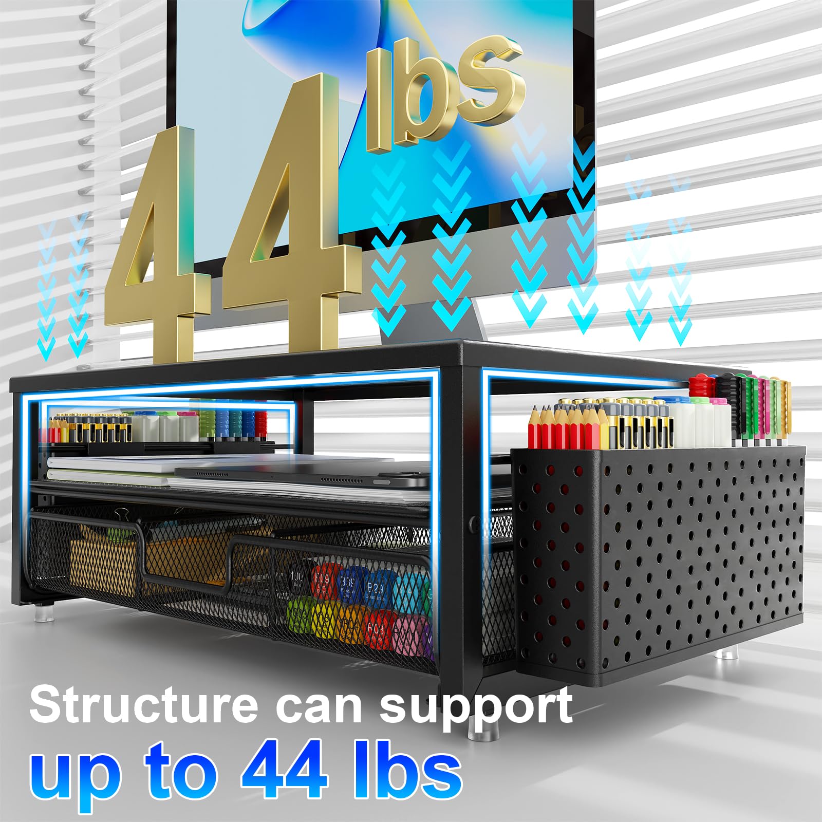 - 【Improved Work Efficiency】: The monitor riser comes with a sliding drawer and two pen holders. It accommodates various office desk items, saving space. It helps you quickly identify the contents of each compartment, doubling your work speed.