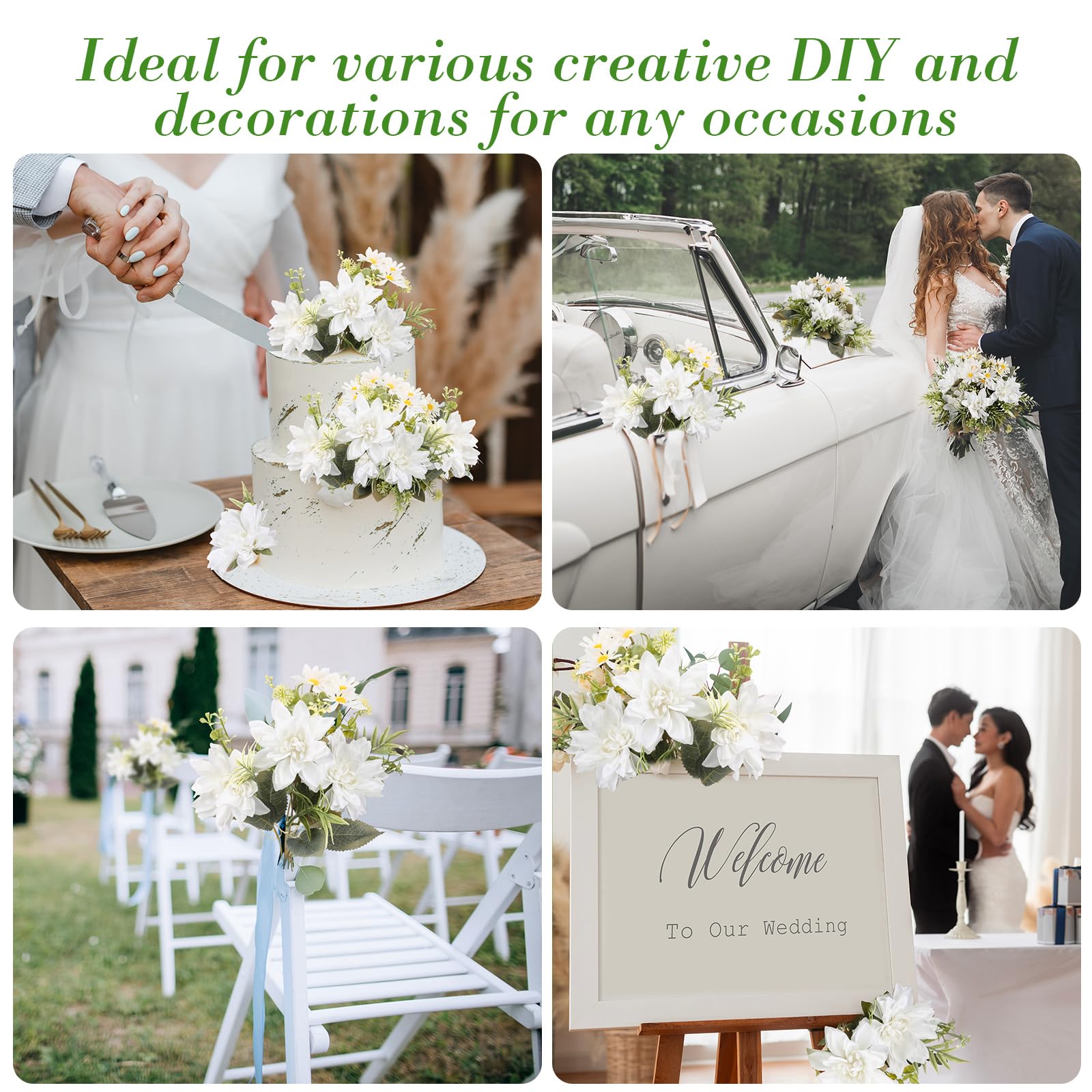 Giegxin 6 Bundles Artificial Dahlia Flowers Bouquets with Daisies Silk Flowers Artificial with Stems Floral Arrangements Faux Dahlias for Home Wedding Party Office Decor(White)