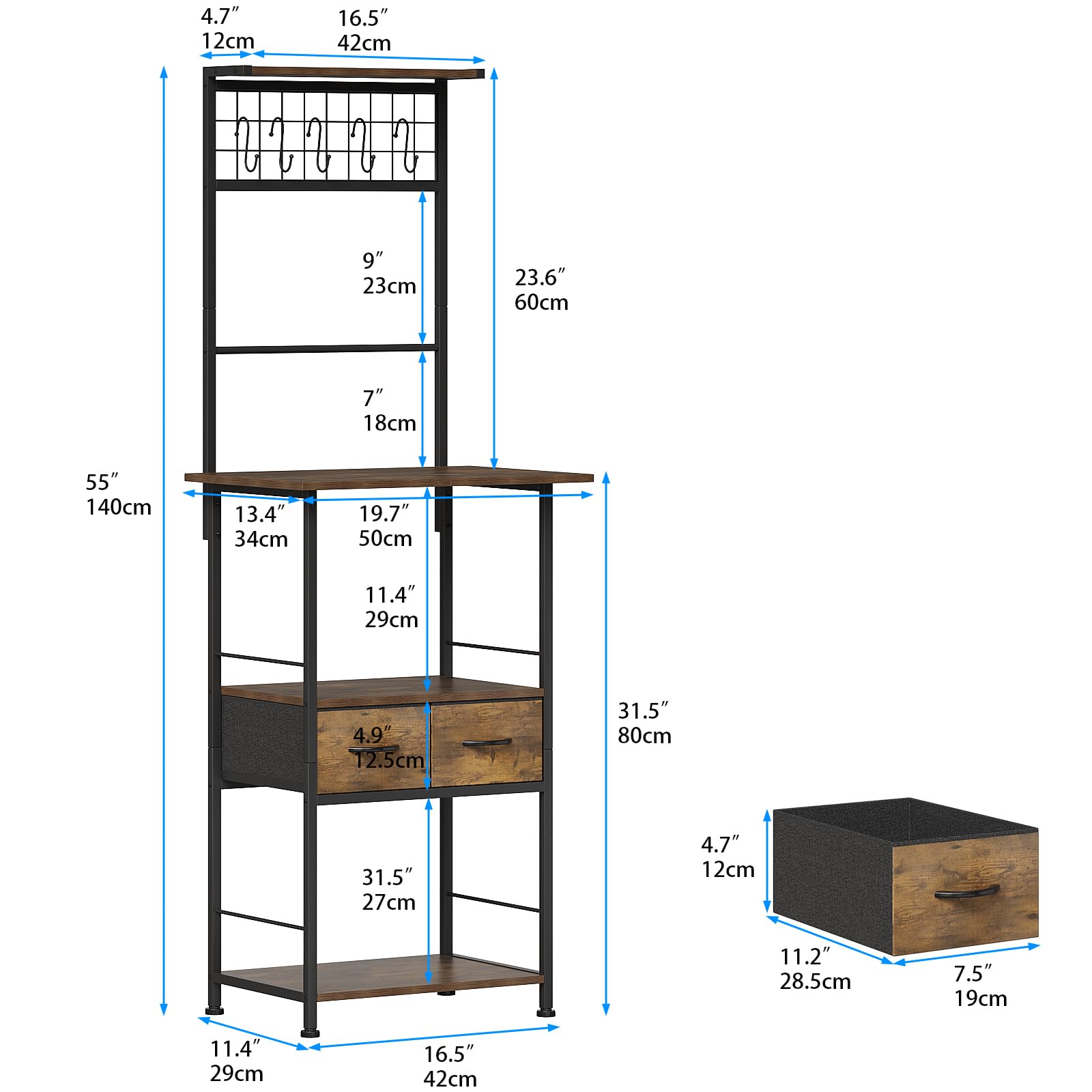 - Space-Saving Slim Coffee Bar Station : At 19.7'L x 14'W x 55.1'H, this rustic kitchen storage shelf adds timeless elegance to any corner or small space of your home. Whether used as a bakes rack, microwave stand, or coffee bar, it enhances the aesthetic appeal of your living space.