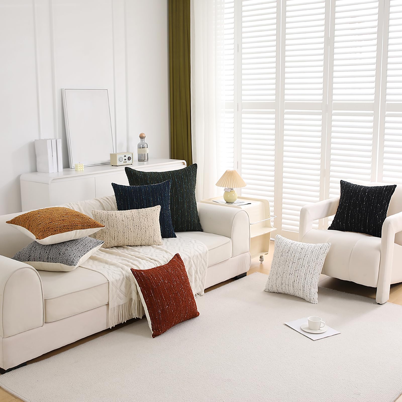 GIKKEARL Textured Boucle Pillow Covers 18x18 Neutral Striped Throw Pillows Soft Modern Farmhouse Pillow Cases, 1pc Decorative Accent Square Couch Cushion Cover for Bed Chair Living Room, Black