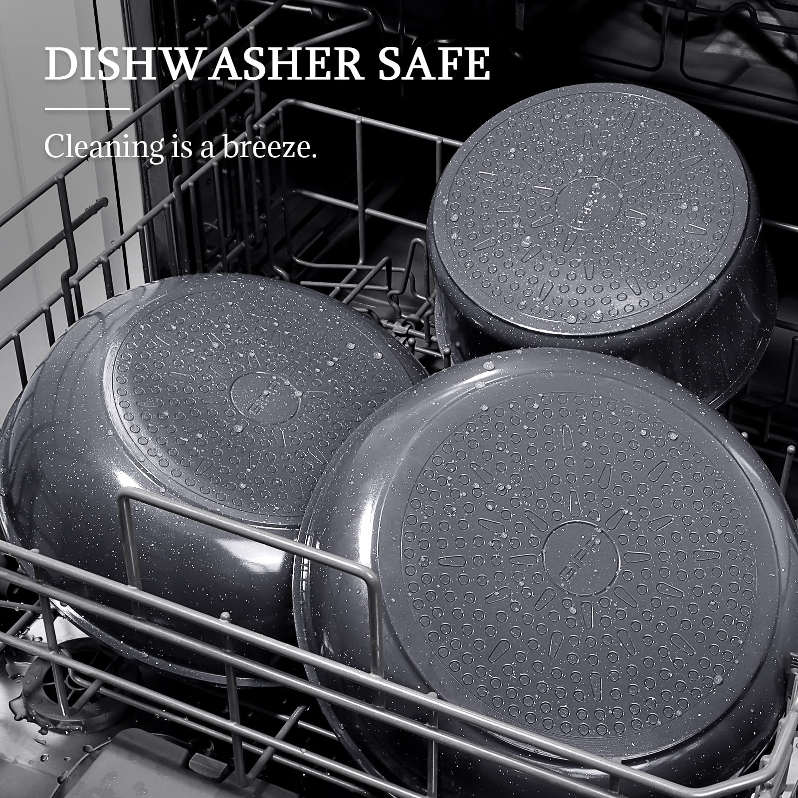 - Healthy Ceramic Coating - Made with 100% non-toxic ceramic nonstick coating, free from PFOA, PFAS, PTFE, lead, and cadmium. Enjoy healthier cooking with ceramic pots and pans set