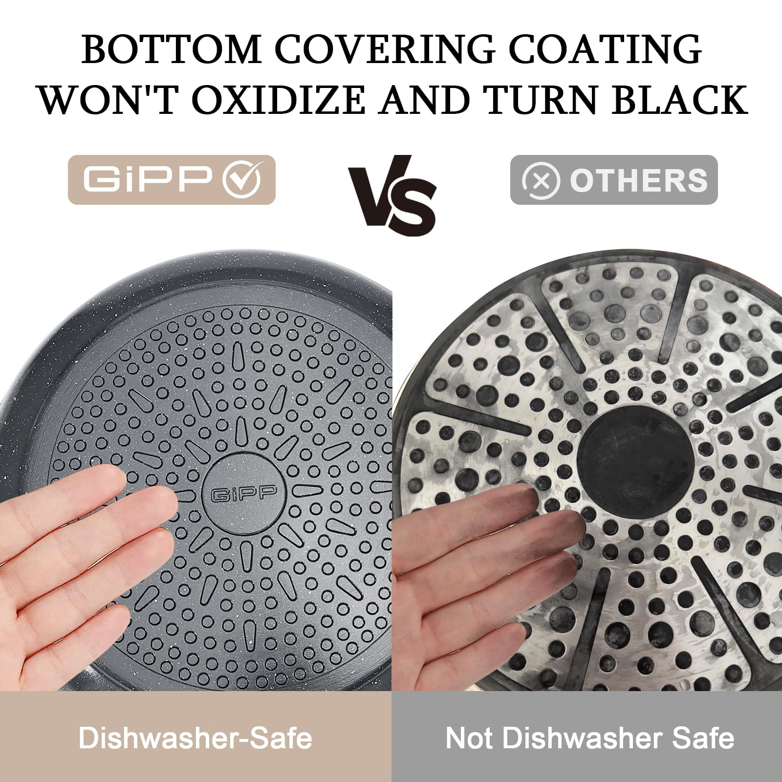 - Effortless Cleanup - GiPP Ceramic cookware set boasts an innovative dual-sided ceramic finish, inside and out, make cleanup easy without the hassle of stuck-on food. Dishwasher safe