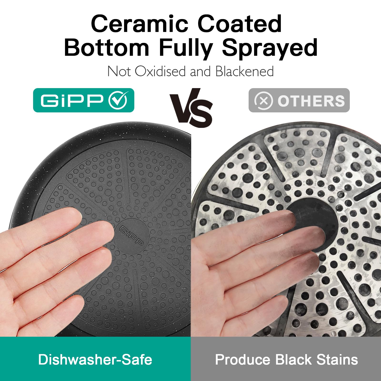 - 100% Non-Toxic & Healthy - Made with a healthy ceramic coating free from PTFE, PFAS, PFOA, PFOS, APEO, lead, cadmium and SGS Approved. GiPP ceramic Pots and Pans Set is safe for your family and the environment