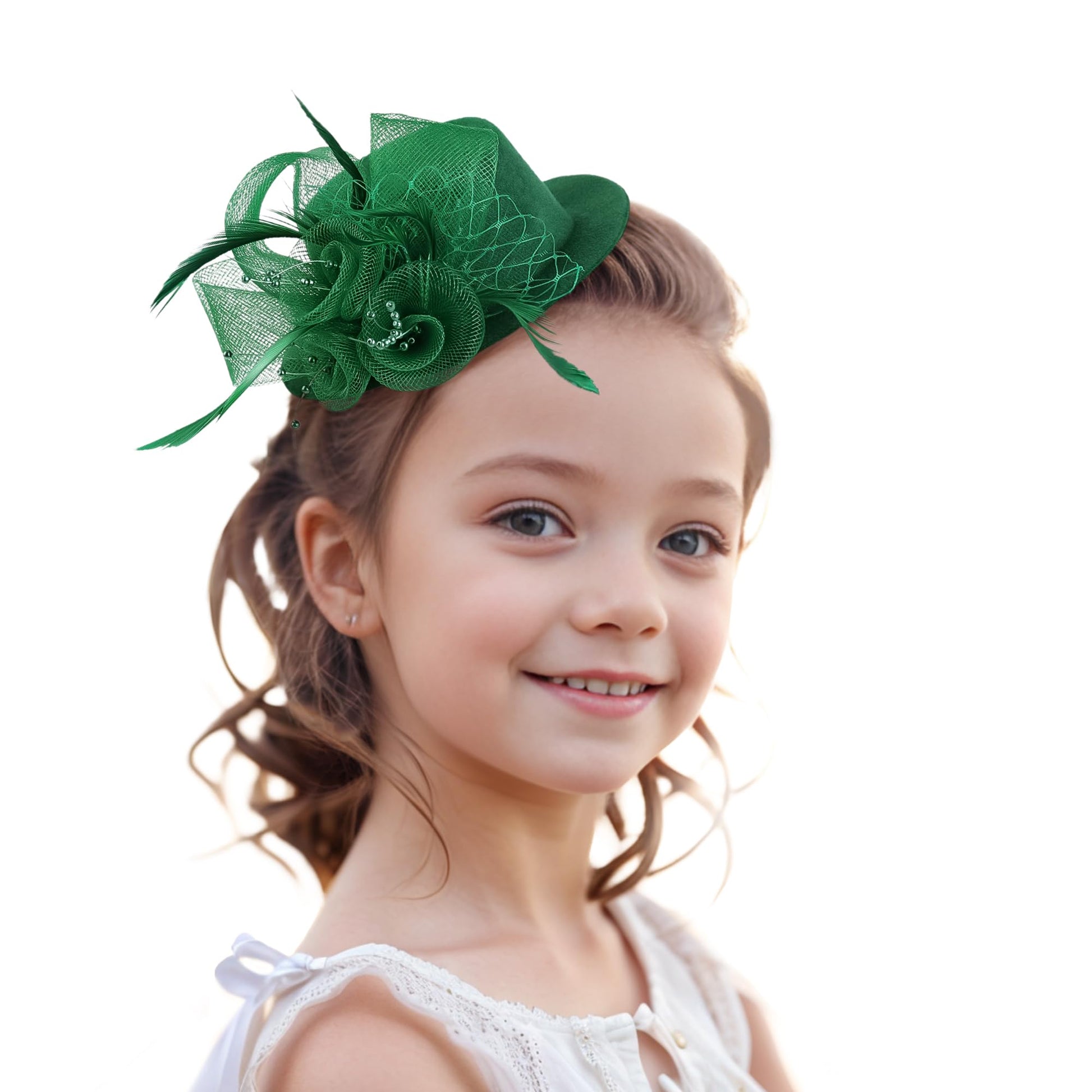 Girls Elegant Tea Hat - Pink Derby Hats with a Flower for Tea Party, Mini Fascinator Hair Clip for Girl Children Kentucky Party, 5.11inch