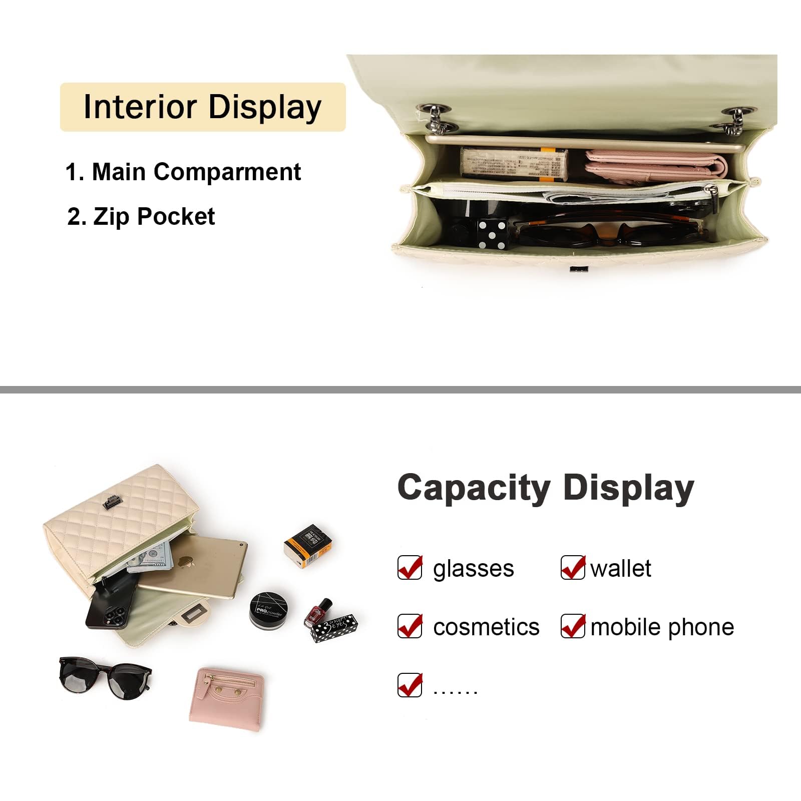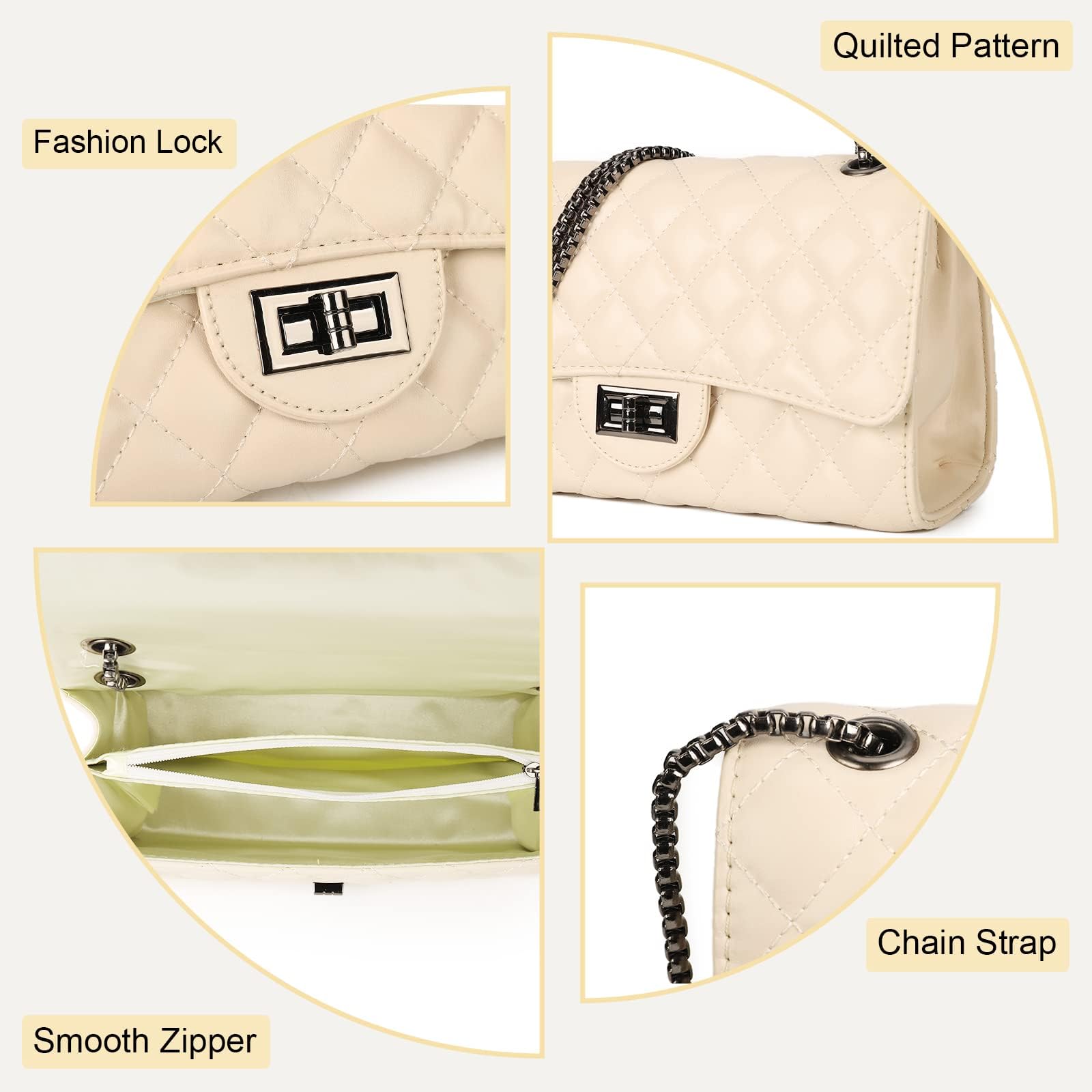 Gladdon Quilted Crossbody Purse for Women Trendy Ladies Shoulder Bag with Chain Designer Purses Beige I