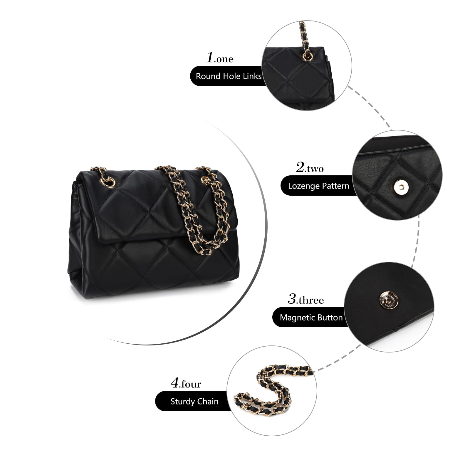 Gladdon Quilted Crossbody Purses for Women Small Ladies Shoulder Bags with Chain Trendy Clutch Purse Cute Designer Bag Black