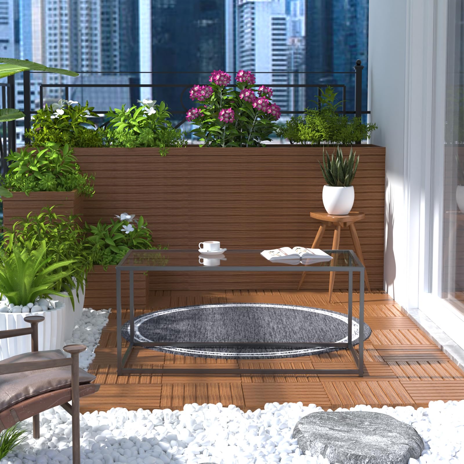 - [Versatile Functions] -Glass table Tabletop size is 39.4' x 18.9' x 17.7' inch (100 cm x 48 cm x 45 cm); This glass tables for living room is powerfully adaptable, serving as a metal frame coffee table in front of your sofa or TV, or in the center of your tea room.