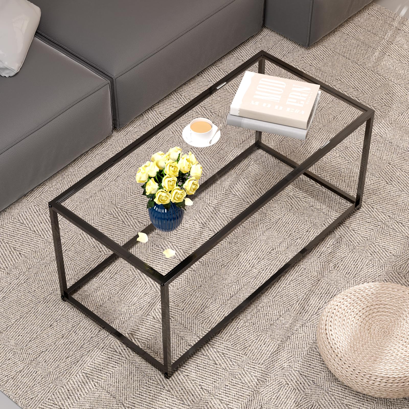 - [Sturdy Frame] - Made of 6mm Explosion-proof clear tempered glass, the glass tabletop and metal frame can be perfectly connected to make this low coffee table safe and durable.
