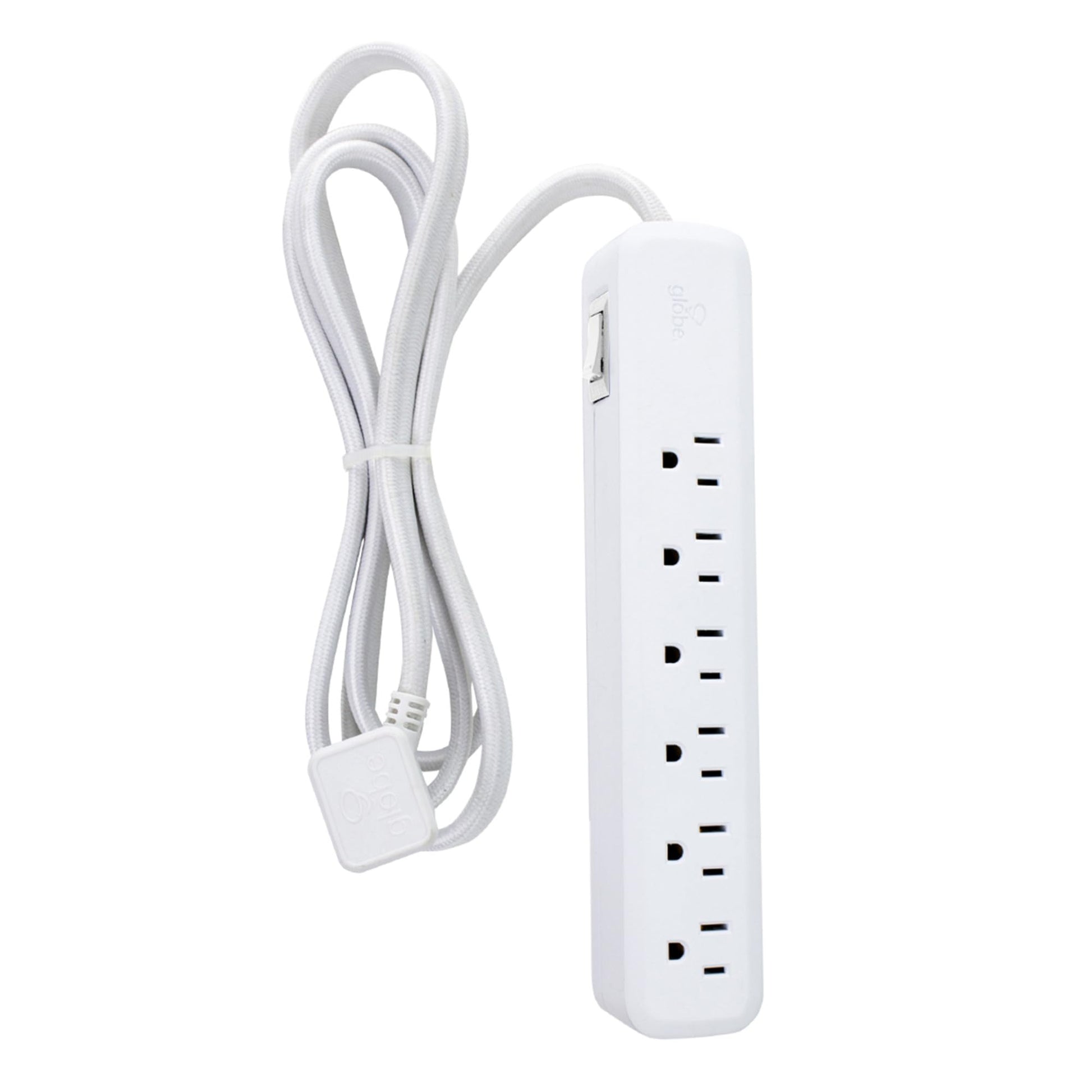 Globe Electric Designer Series 6ft 6-Outlet Power Strip, Circuit Breaker Switch, Right Angle Space Saving Plug, White Finish,78356