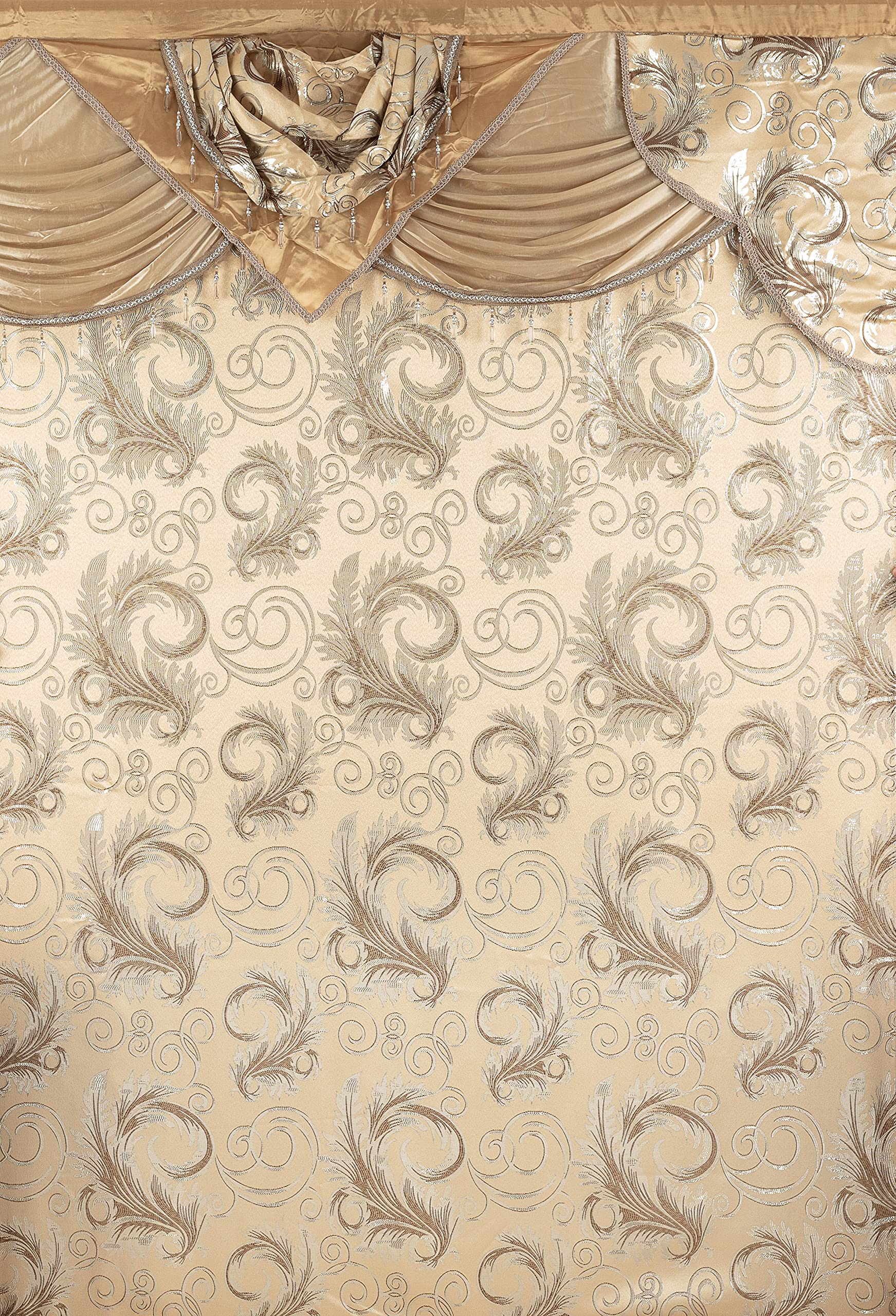 GLORY RUGS Jacquard Luxury Window 2 Panel Set Taupe Curtain with Attached Valance and Backing Bedroom Living Room Dining 2 Curtains 55x84 inches Each Jana