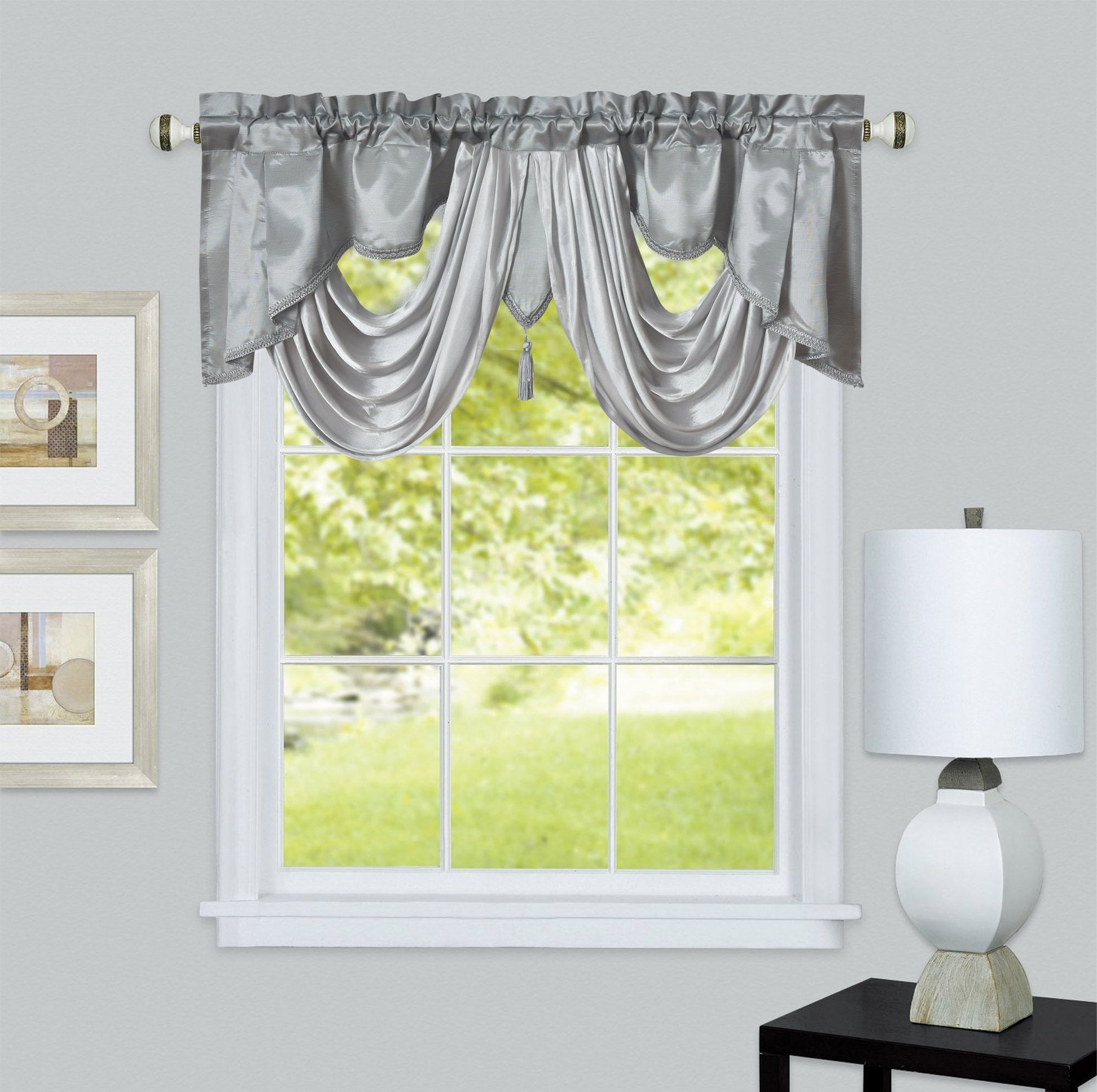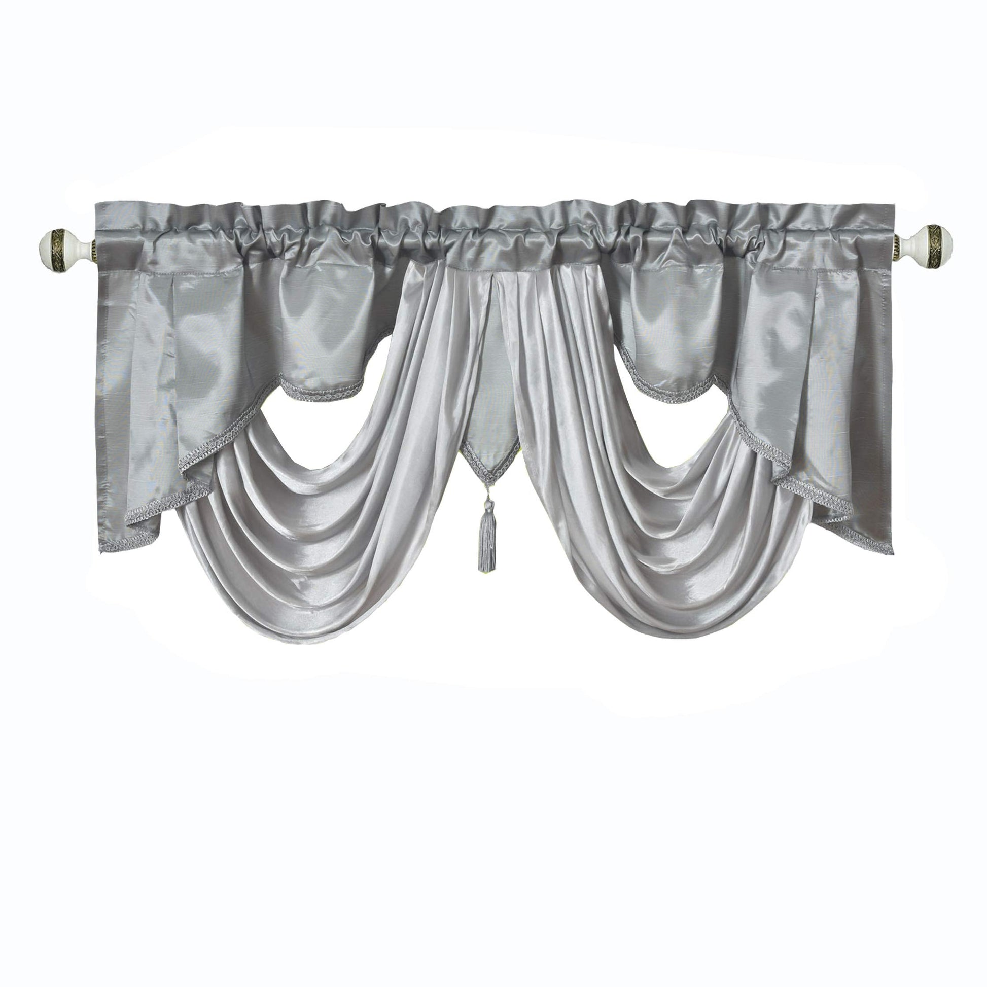 GOHD Valarie Fancy Window Valance. 54 x 18. Taffeta Fabric with Soft Satin Swag. Add Some Royal luxruy Accent to Your Home. (Grey)
