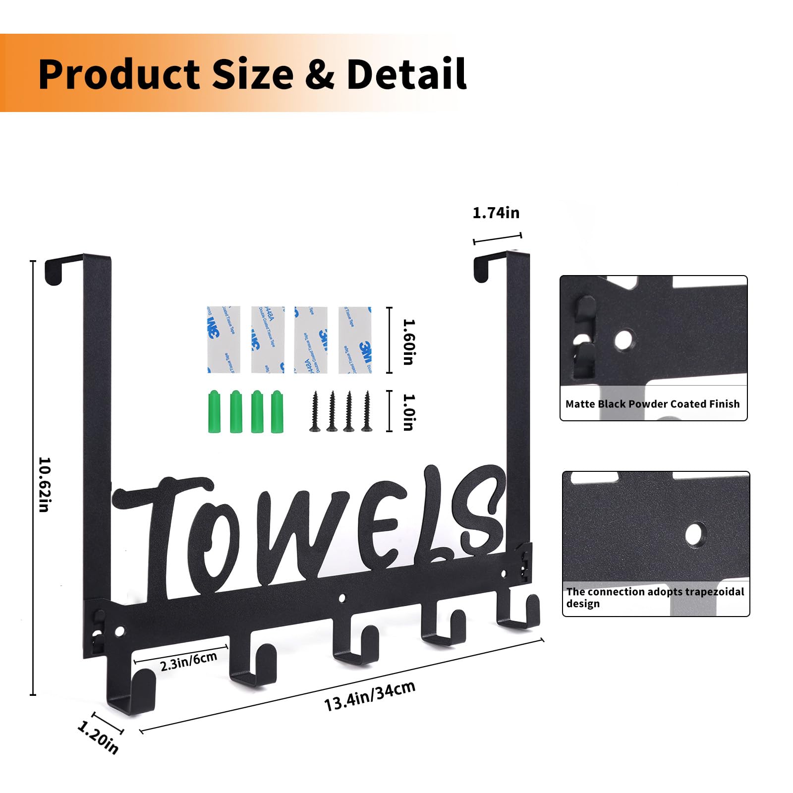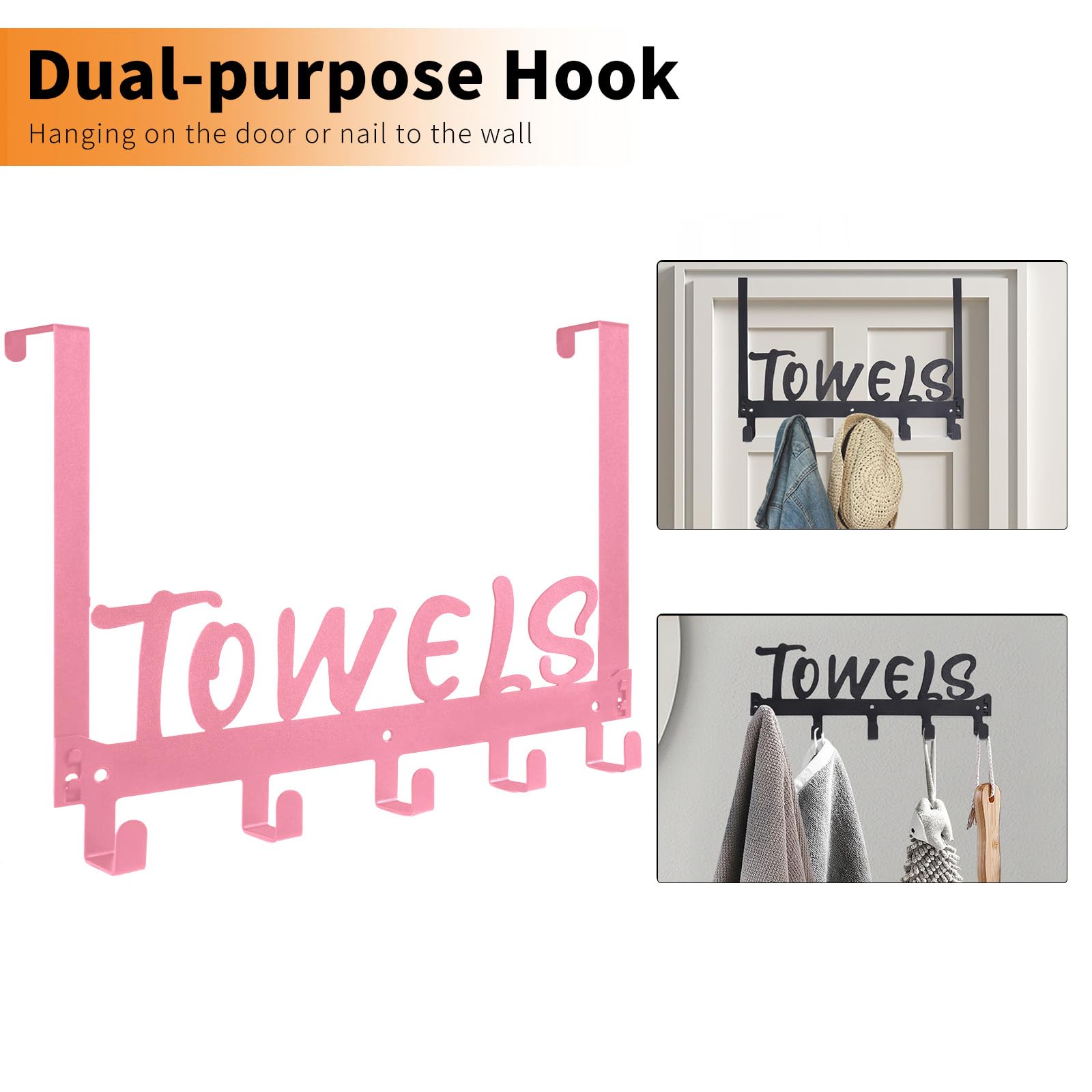 - Two Installation Methods: Choose between no-drilling over the door installation or wall-mounted installation. This black versatile towel holder and towel hook can be easily hung over any standard door or securely mounted on the wall