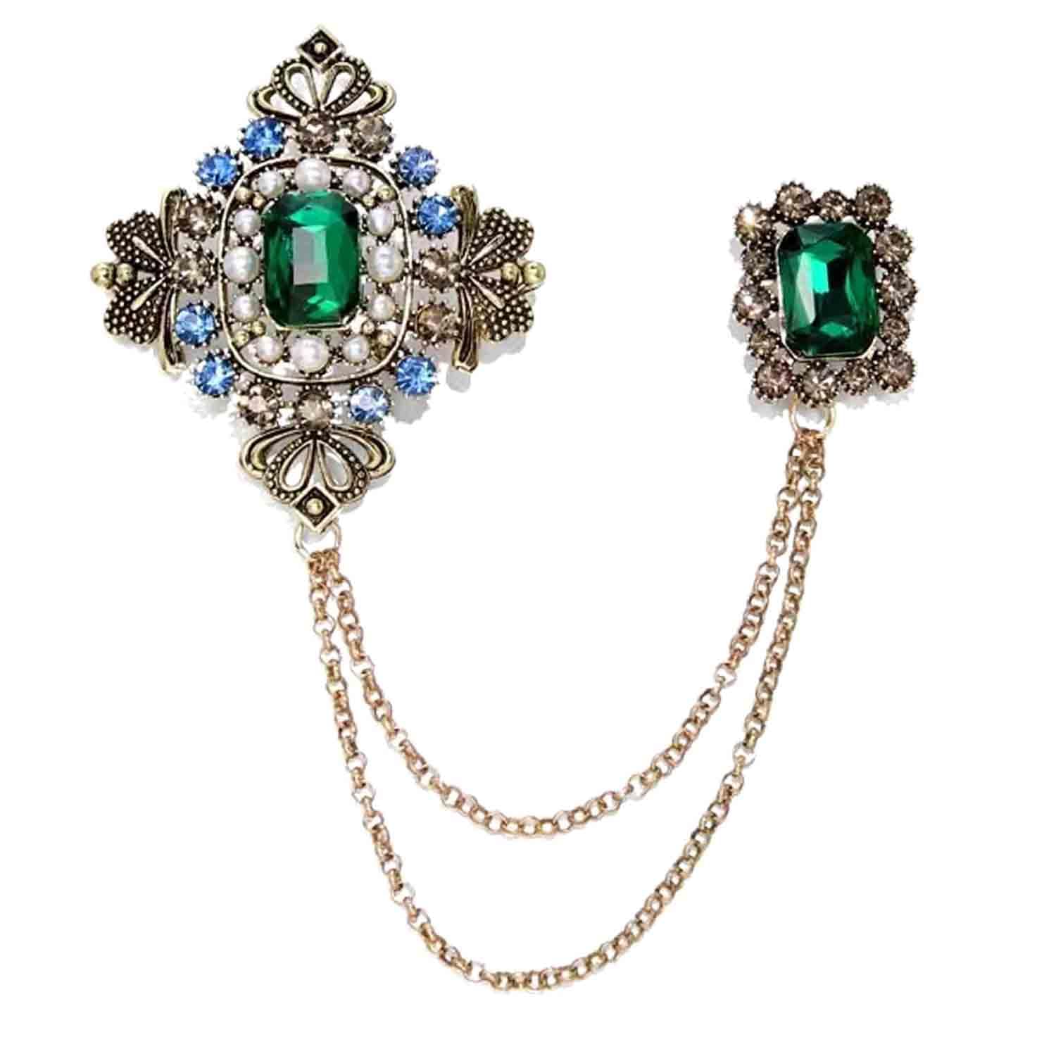 Gold Silver Plated Chain Rose Flower Violin Five-pointed Star Brooches Collar Pins Crystal With Hanging Chain Suit Shirt Lapel Brooch Pin Fashion Jewelry for Men Boy