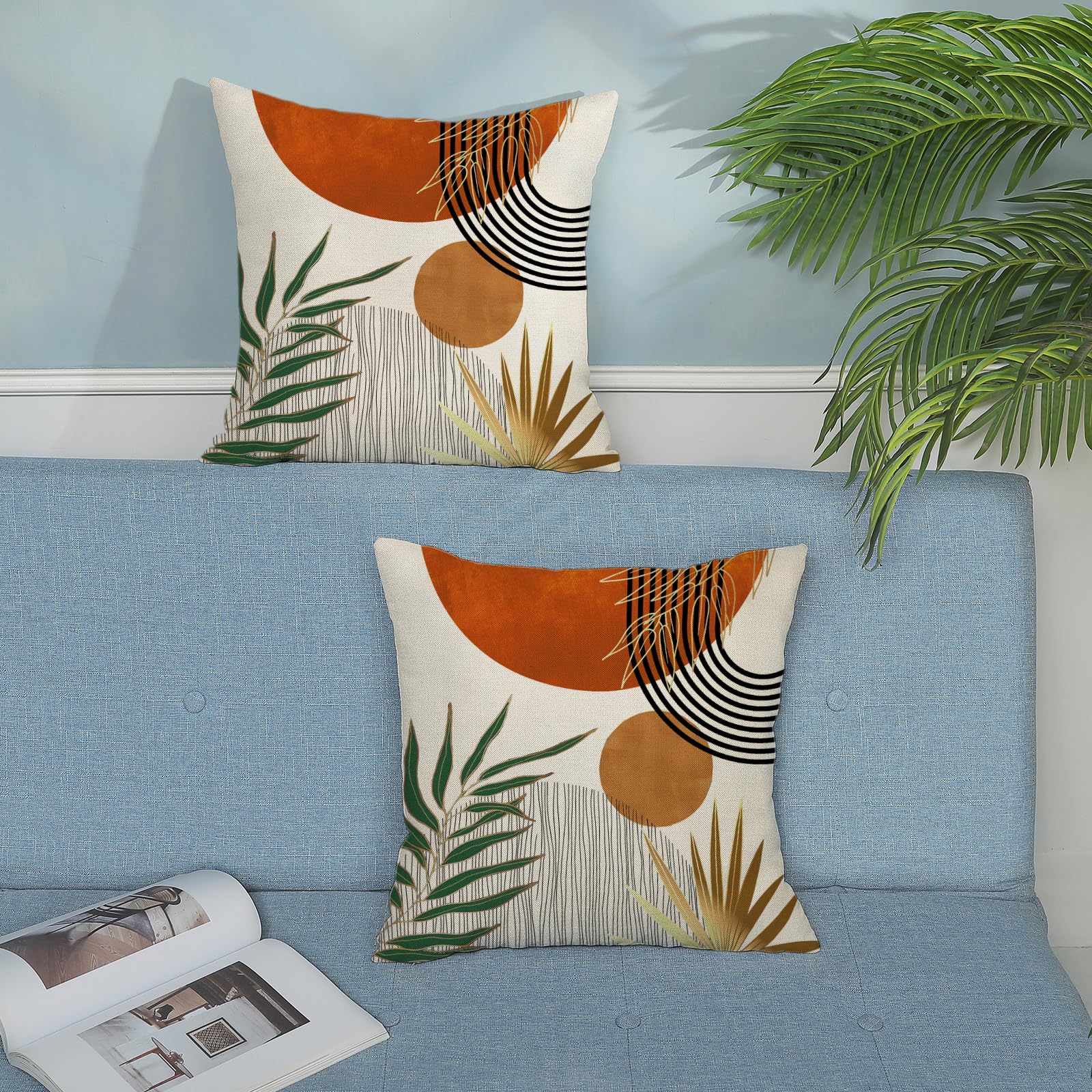 GOLIANDA Boho Pillow Covers 20x20 Set of 2 Green Gold Orange Throw Pillows Tropical Leaves Sunset Modern Mid Century Decorative Pillowcase Outdoor Bohemian Linen Cushion Case for Couch Sofa Bed Decor