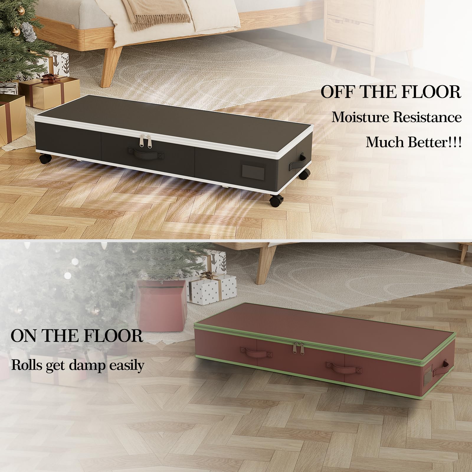 - Enhanced Moisture & Dust Protection: Our upgraded wheels design elevates the wrapping paper storage bag and keeps it off the ground, providing much better moisture protection. In the meantime, the high-quality dual zipper ensures a tight seal, effectively keeping out dust and bugs, so your wrapping paper remains clean and protected, ready for Christmas decoration and other occasions