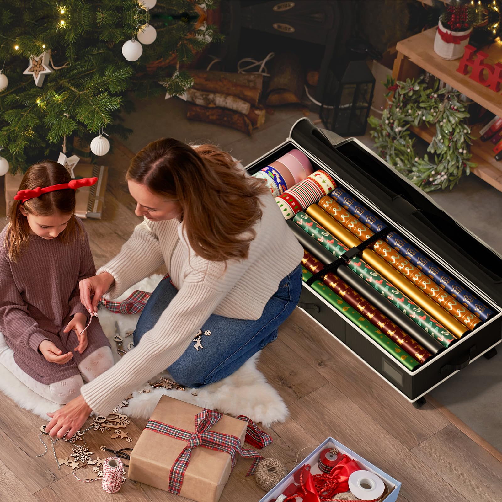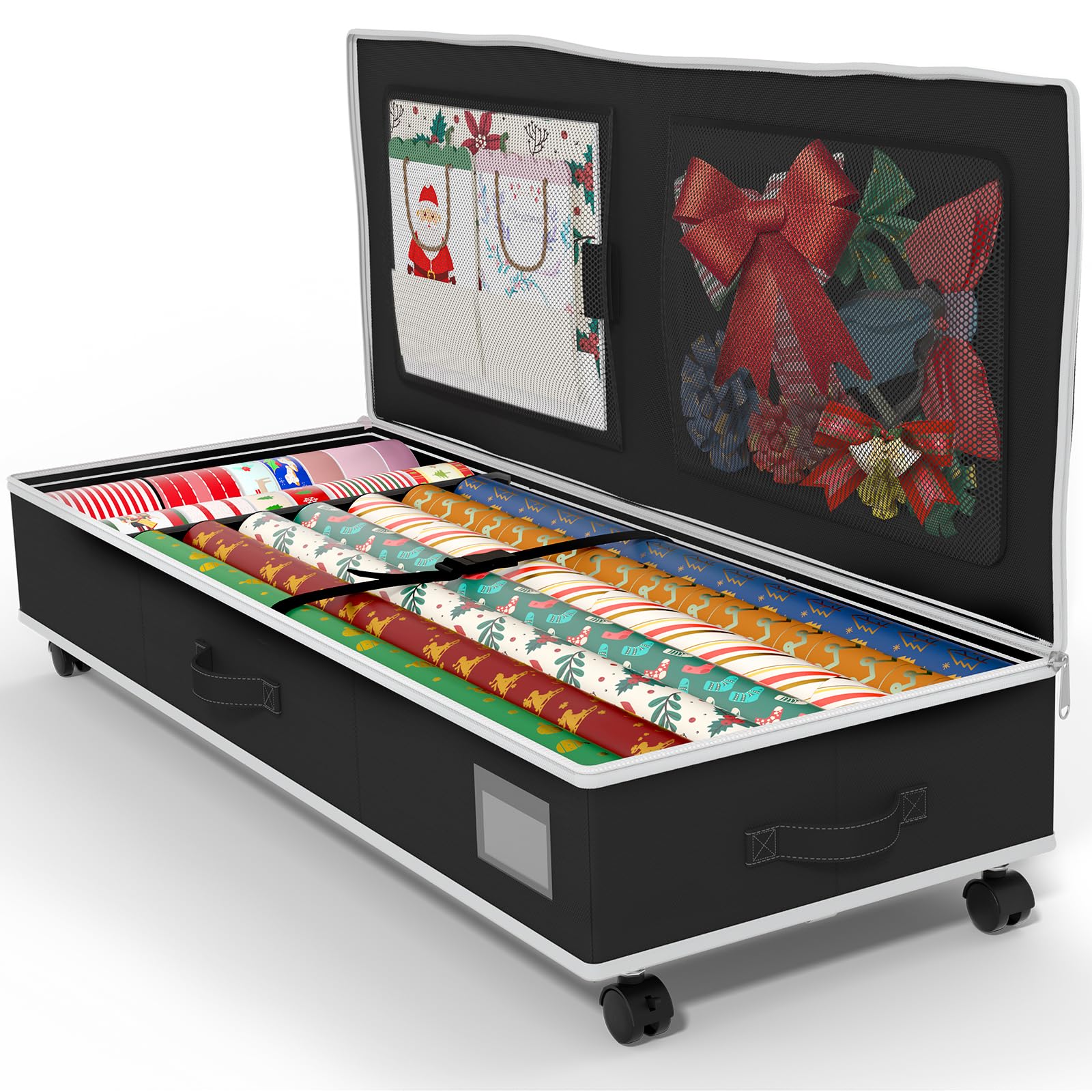 - Space-saving Under-bed Storage: This spacious gift wrap storage box, sized at 106x36x14 cm, can hold 18 to 24 rolls of wrapping paper, including those up to 40 inches long. Perfect for maximizing under-bed space, our wrapping paper container with wheels keeps your wrapping supplies neatly organized and easily accessible, making it easier to find what you need without rummaging through clutter