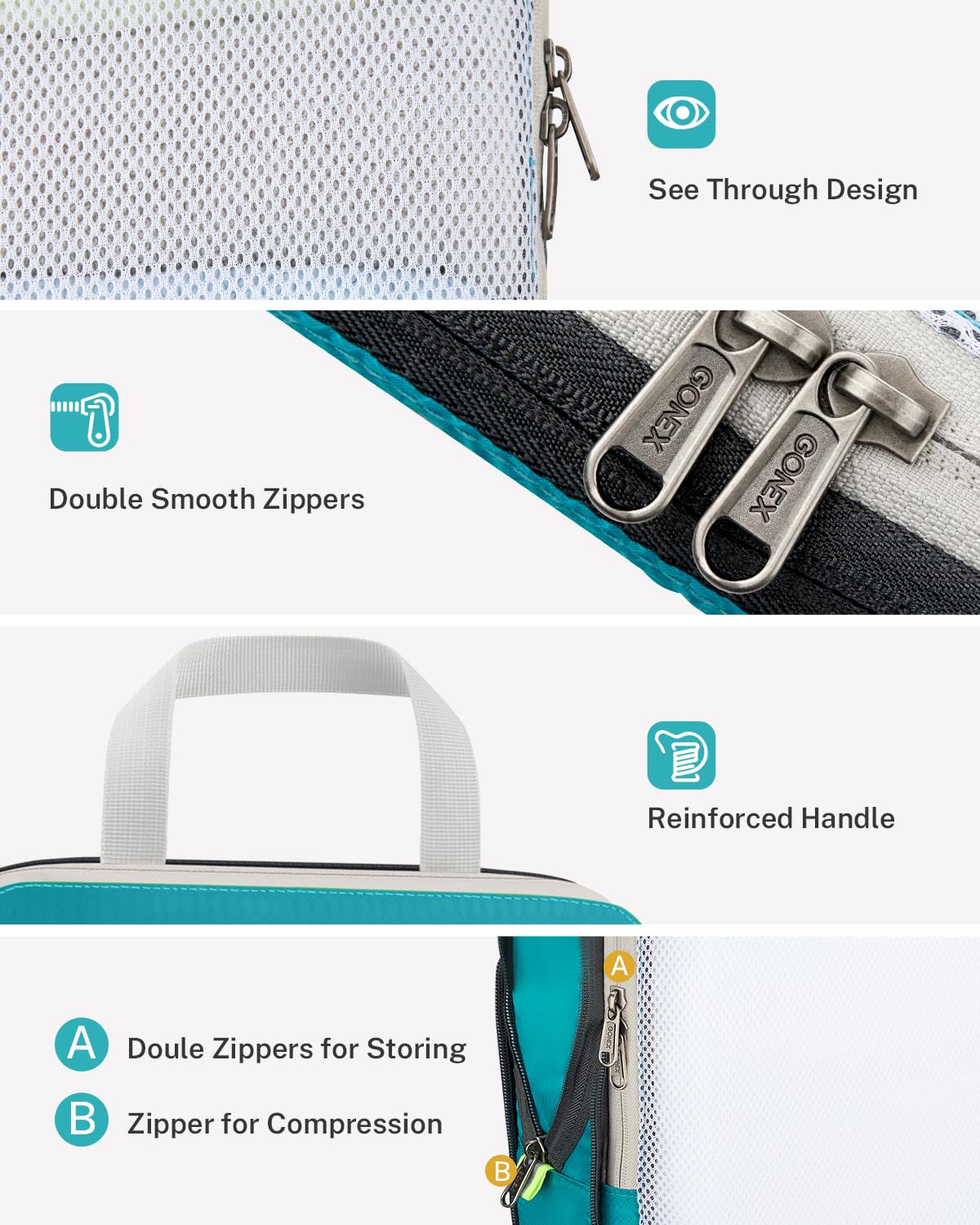 - Space Saver: Double zippers of the packing cube work perfectly in compressing clothes to help save space in your carry on luggage or travel backpack. Great travel gear to minimize your carryon size. Quick grab handle for easy access to pulling out packed cubes from suitcase or backpack.