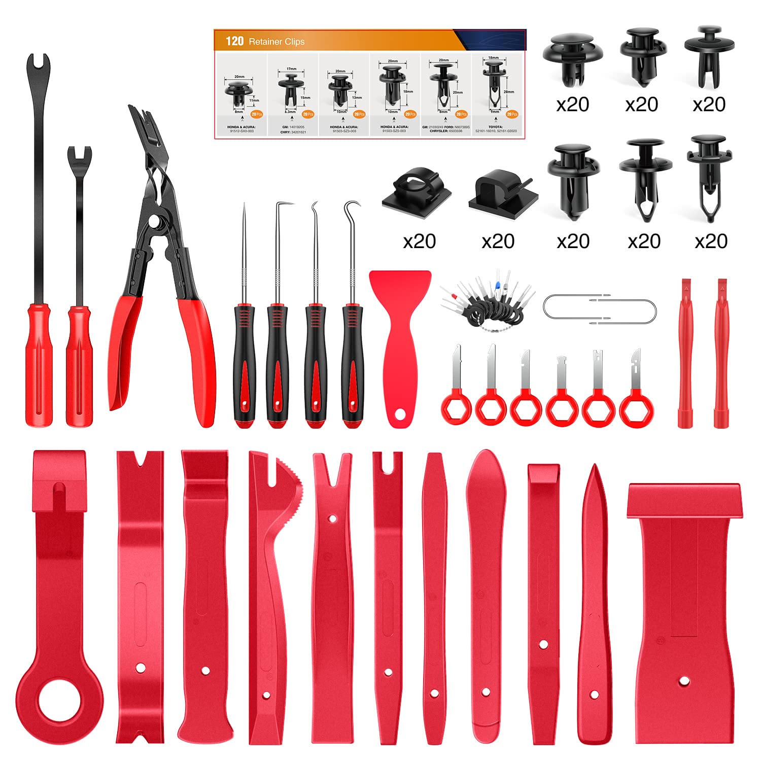 GOOACC 200Pcs Trim Removal Tool, Auto Push Pin Bumper Retainer Clip Set Fastener Terminal Remover Tool Adhesive Cable Clips Round Handle Crowbar Kit Car Panel Radio Removal Auto Clip Pliers, Yellow