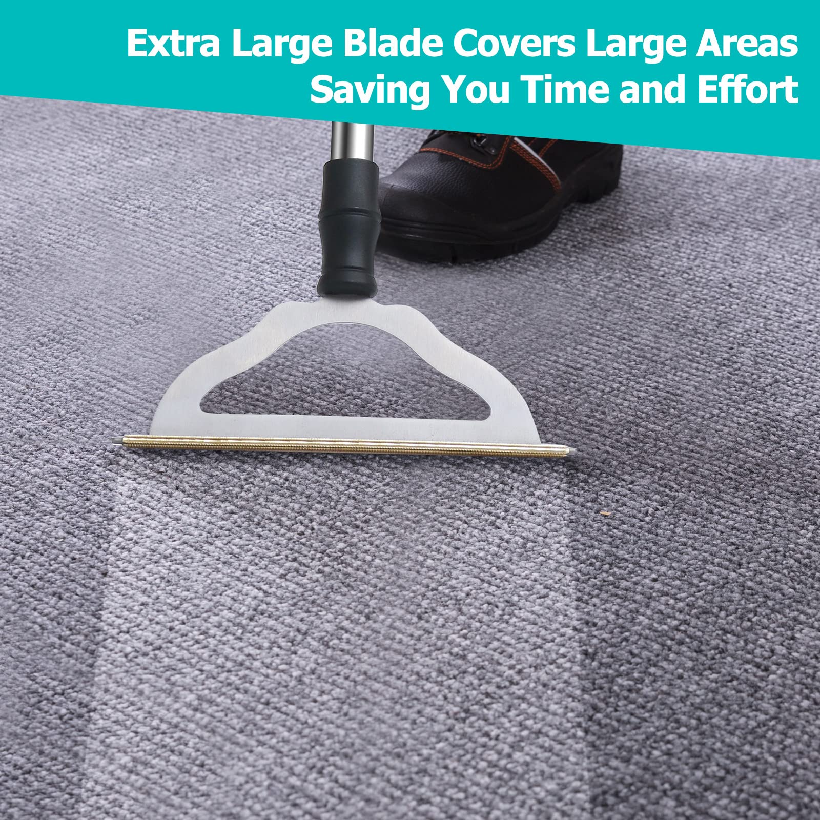 - Adjustable Length for Versatile Use — This multi-functional carpet brush lint remover can be used as a broom, brush, scraper, and remover, to suit your cleaning needs, making it a must-have tool for pet owners. Use the 47” handle to clean large carpets and rugs, 19” handle to clean couch, car mat, cat tree and other small spaces (except for knits and delicate fabrics) .