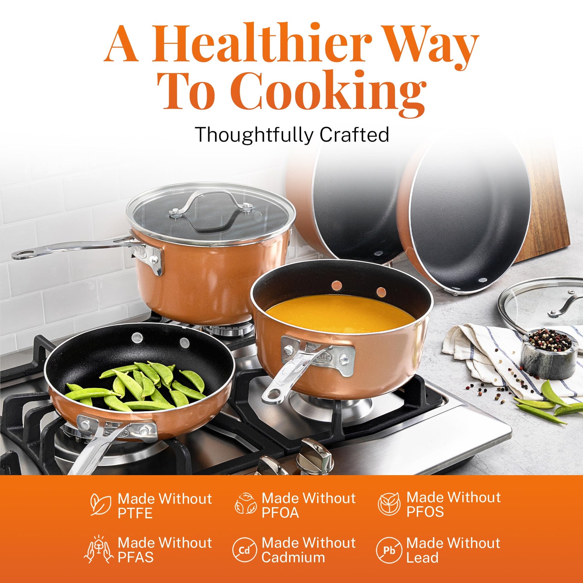 - Healthy & Toxin Free: Create a healthy and ecofriendly cooking environment with Gotham Steel- Each Piece of cookware is 100% Free of PFOA, PFOS, lead, cadmium & any other harmful chemicals, ensuring your kitchen and home stays healthy and toxin free.
