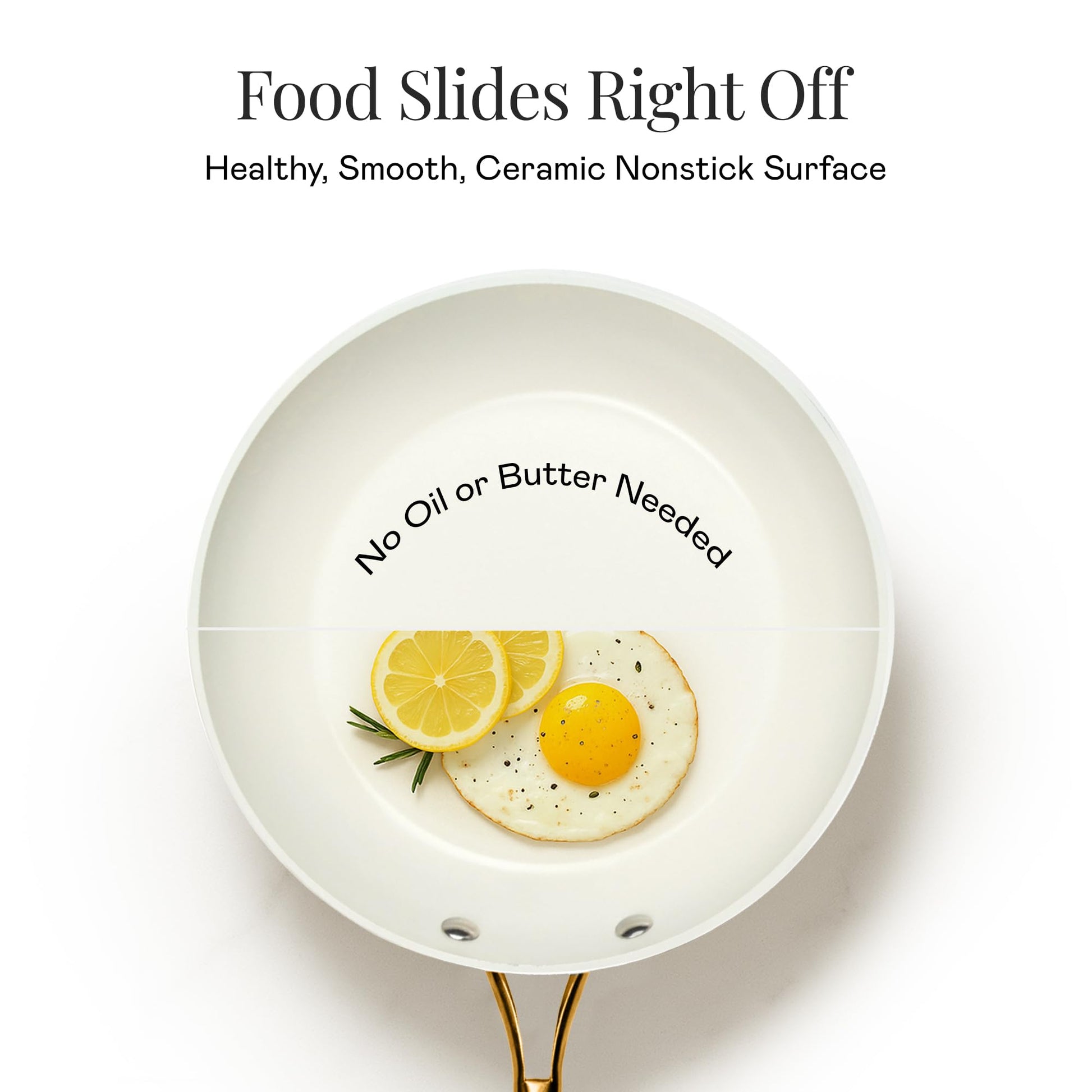 - ULTRA NONSTICK CERAMIC SURFACE: Healthy cooking is just a step away. Thanks to a nonstick surface that’s 2x more durable than previous generations, this cooking pan set needs minimal to no oil or butter. And they’re designed to properly conduct heat so food cooks evenly.