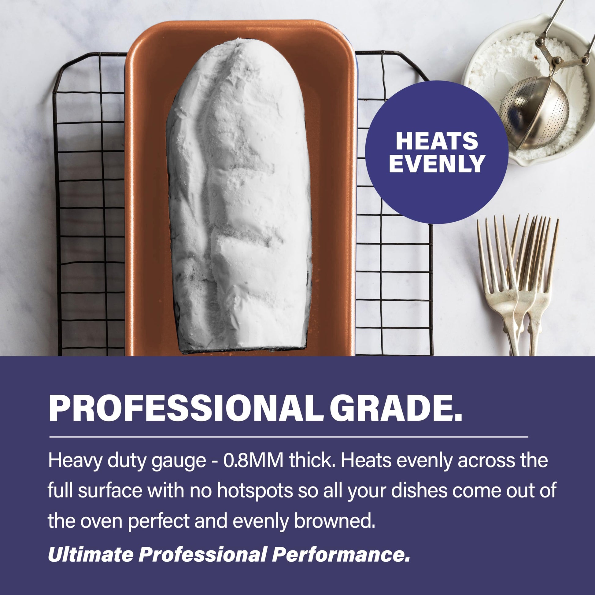 - Ultra-Durable Bakeware: Get years of outstanding use- Each piece of bakeware is comprised with 0.8MM thick gauge providing durability while evenly heating and perfectly browning your foods.