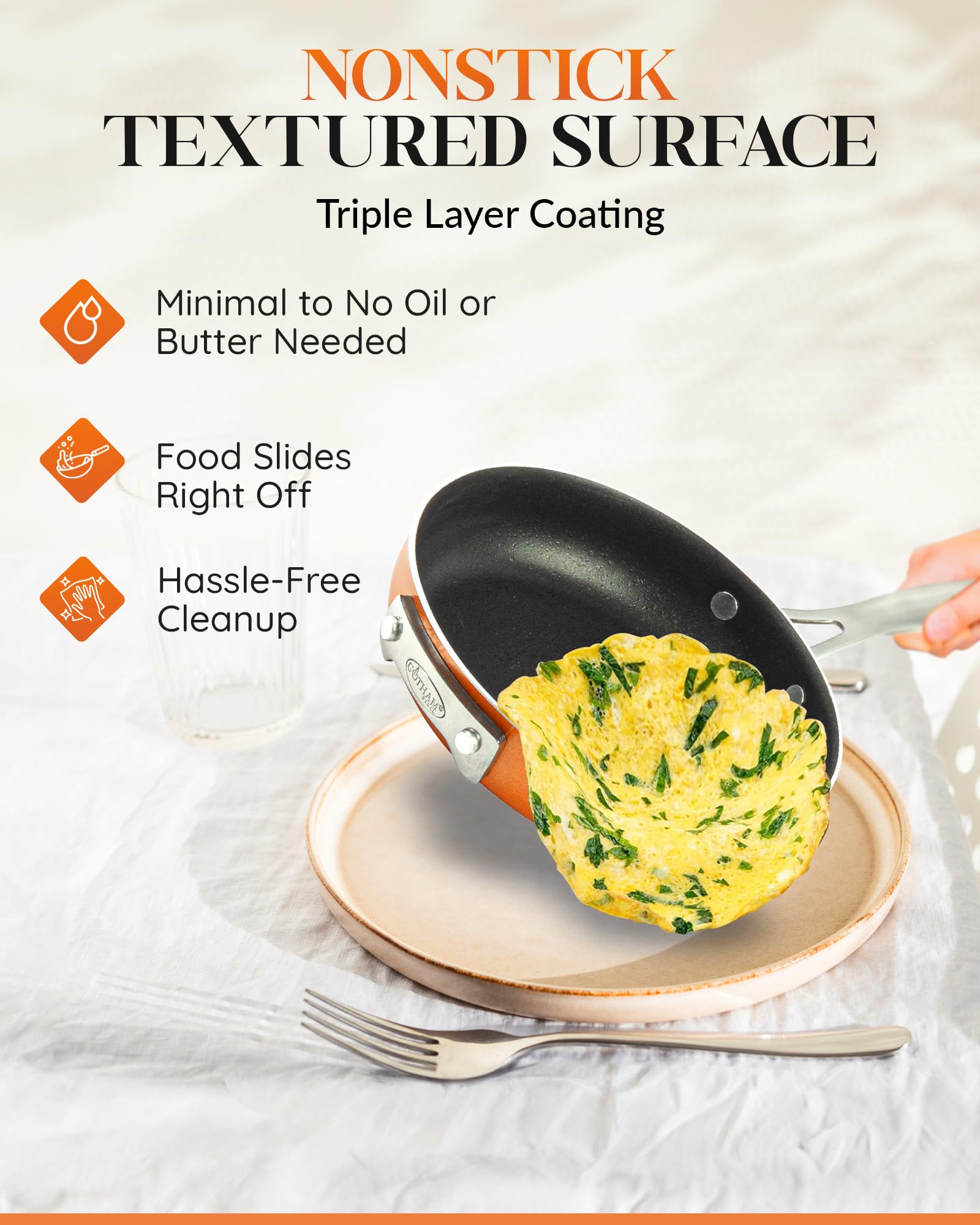 Gotham Steel Stackable Pots and Pans Stackmaster 10 Piece Cookware Set with Ultra Nonstick Cast Texture Ceramic Coating, Copper