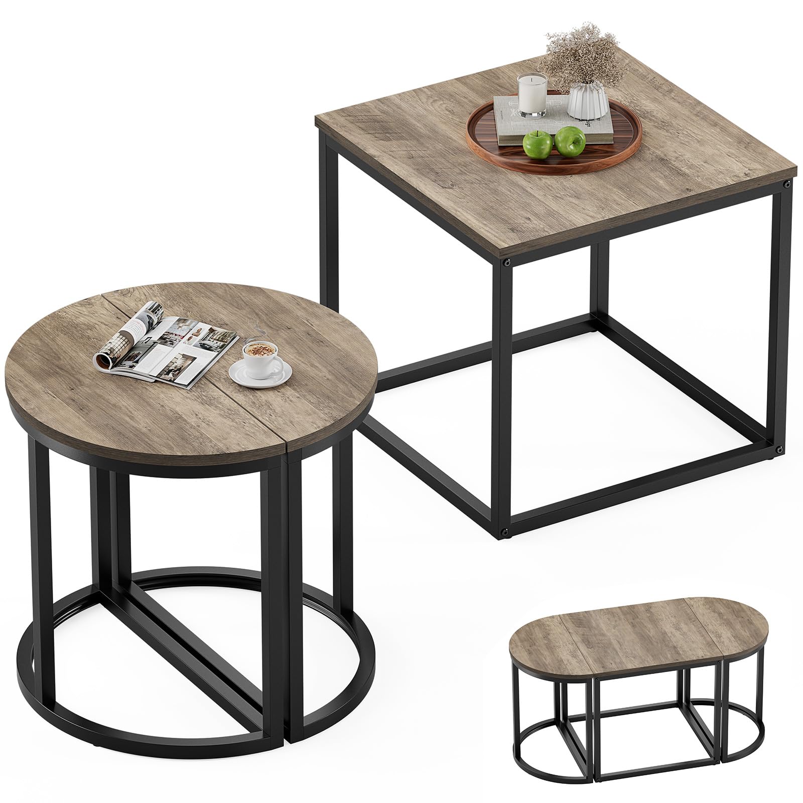- Coffee Tables 3 in 1: Including 1 square center table and 2 semi-circular end tables, Center table Size: 23.6' L x 23.6' W x 21.9' H and these two side tables combined into one round end table measures: 23.6' Diameter x 21.9' H