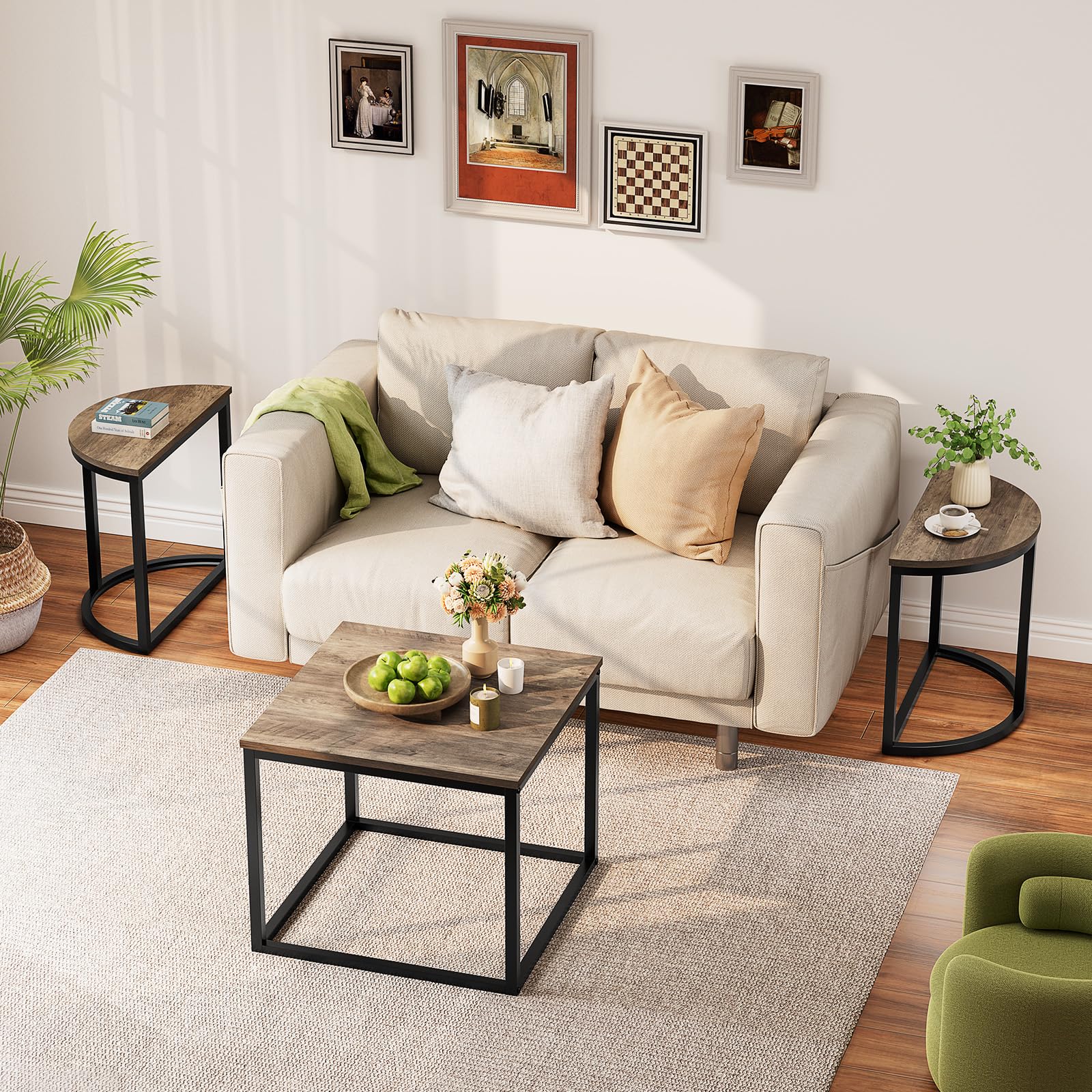 GreenForest Coffee Table Oval 3pcs Set, Modern Living Room Table with 2 End Tables, Small Center Table with Metal Frame for Home Apartment, Gray Wash