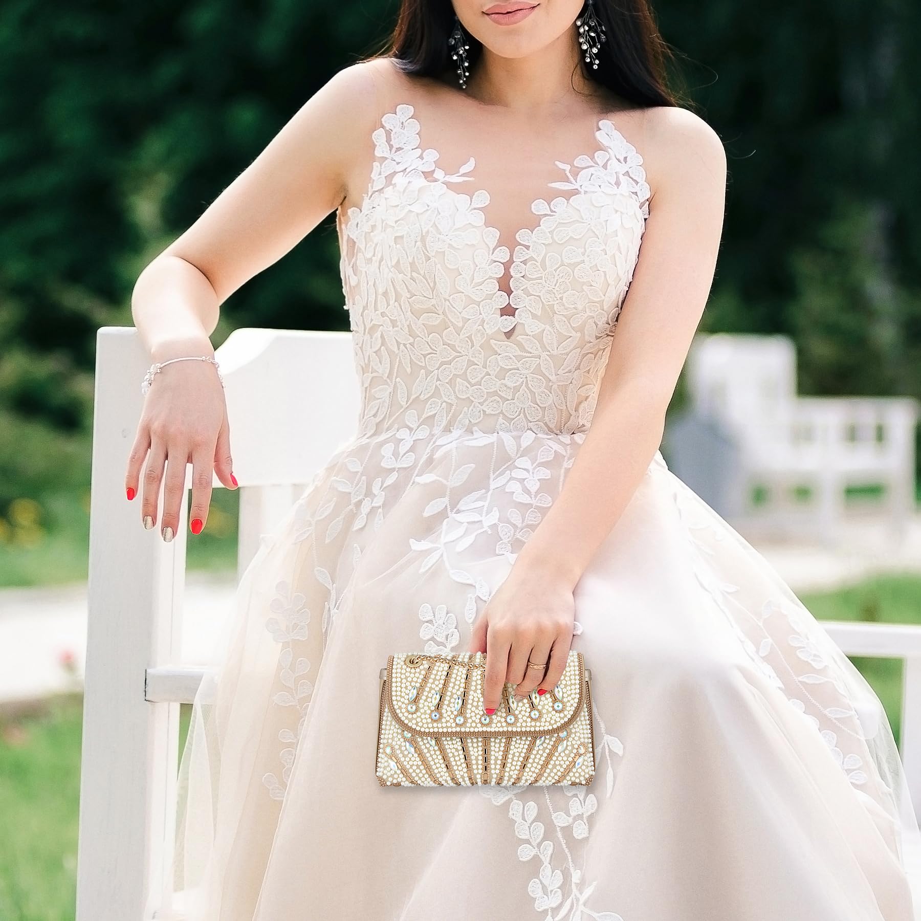 Gripit Pearl Clutch Purse Sparkly Rhinestone Evening Bag Small Glitter Wedding Party Prom Handbag for Women
