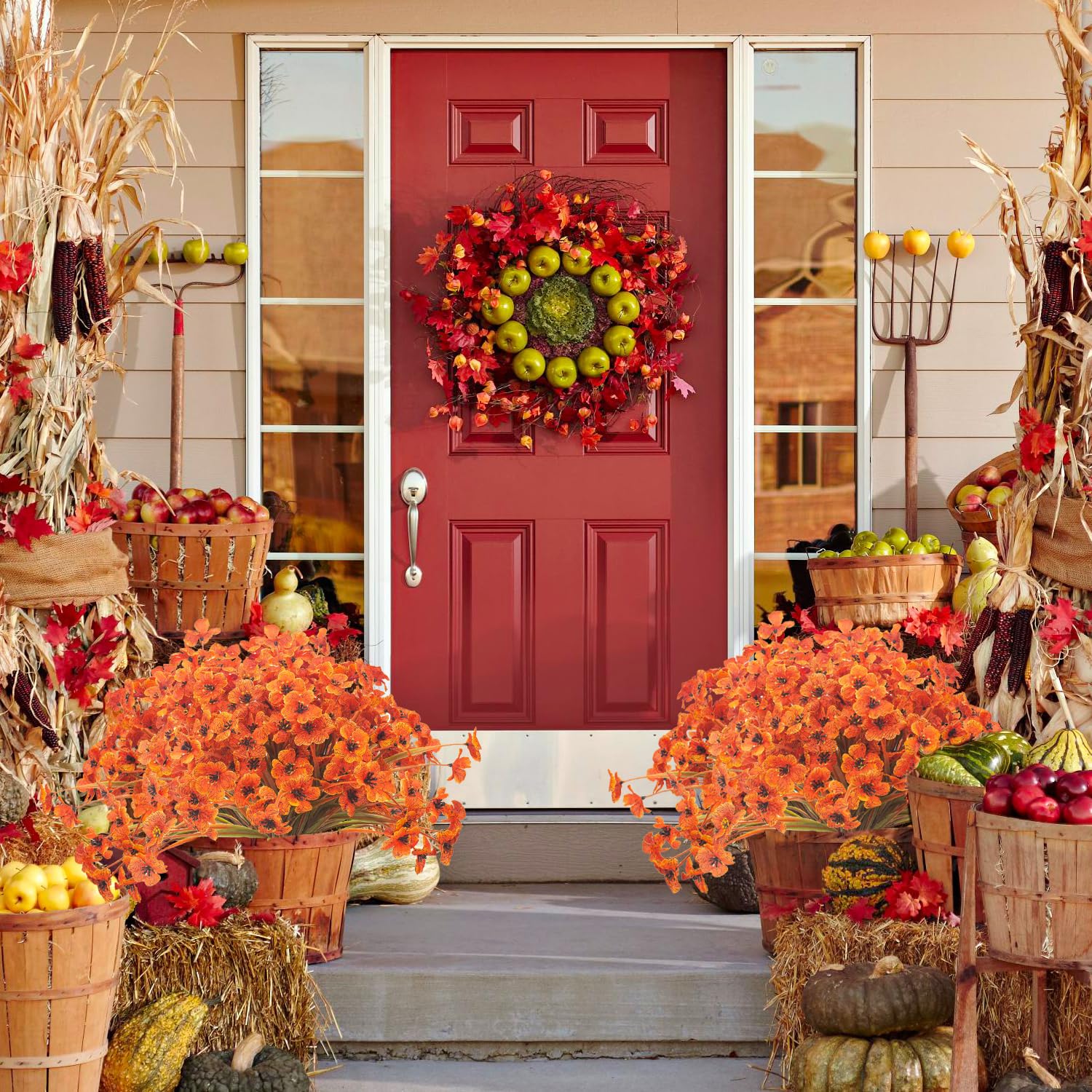 Grunyia Artificial Fall Flowers for Outdoors, 20 Bundles Faux Plants No Fade Plastic Shrubs Autumn Decor Farmhouse Home Garden Thanksgiving (Fall Red)