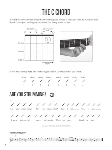 Details: ntroduce your child to the exciting world of guitar with the Hal Leonard Guitar for Kids Method. Designed specifically for young beginners, this fun and engaging method book provides clear, easy-to-follow instructions that will have your child playing guitar in no time. Whether you're a parent or a music teacher, this book is the ideal tool for teaching kids the fundamentals of guitar playing. * * This method offers a step-by-step approach, starting with the basics like learning how to hold the guitar, reading music notation, and understanding rhythm. The course covers essential guitar techniques, including how to play simple open chords like C, G7, Em, G, D, and A. Children will also learn to strum and pick, creating a solid foundation for more advanced techniques. The easy page layouts and no-nonsense approach keep children focused and engaged. * * Kids will stay motivated with the Hal Leonard Guitar for Kids Method, which features fun and popular songs that they can play right from the start. Songs like 'Yellow Submarine,' 'Hokey Pokey,' 'I'm a Believer,' 'Surfin' U.S.A.,' and 'This Land Is Your Land' will keep them excited about learning and practicing their new skills. * * Whether using electric or acoustic guitars, this method is perfect for children of all levels, even if they are just starting out. The lessons are designed for kids to work through independently, or in combination with a music teacher resource. The Hal Leonard Guitar for Kids Method is the perfect gift for young aspiring guitarists, offering an enjoyable learning experience that will set them up for a successful musical journey. * * Songs Included: * ABC * Barbara Ann * Brown Eyed Girl * Coconut * Eleanor Rigby * Get Up, Stand Up * The Hokey Pokey * Hound Dog * I'm a Believer * Land of a Thousand Dances * Love Me Tender * Low Rider * Surfin' U.S.A. * This Land Is Your Land * Yellow Submarine * You Are My Sunshine