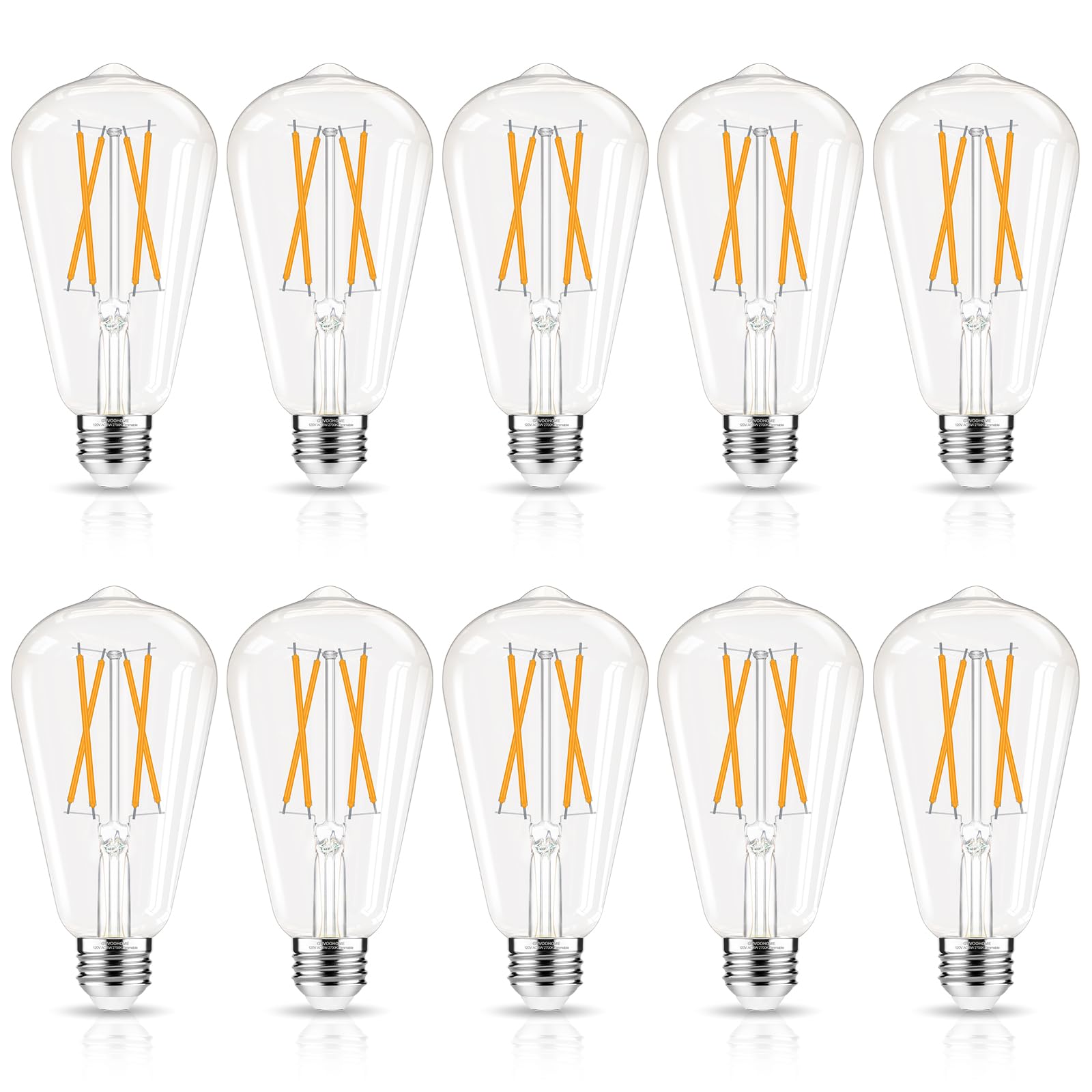 GvvooHome LED Edison Bulbs Dimmable, E26 Bulb 60 watt, Soft White 2700K, ST58 Vintage Light Bulbs, 90+ CRI, 6W 600LM, E26 Medium Base, Clear Glass, 10 Pack