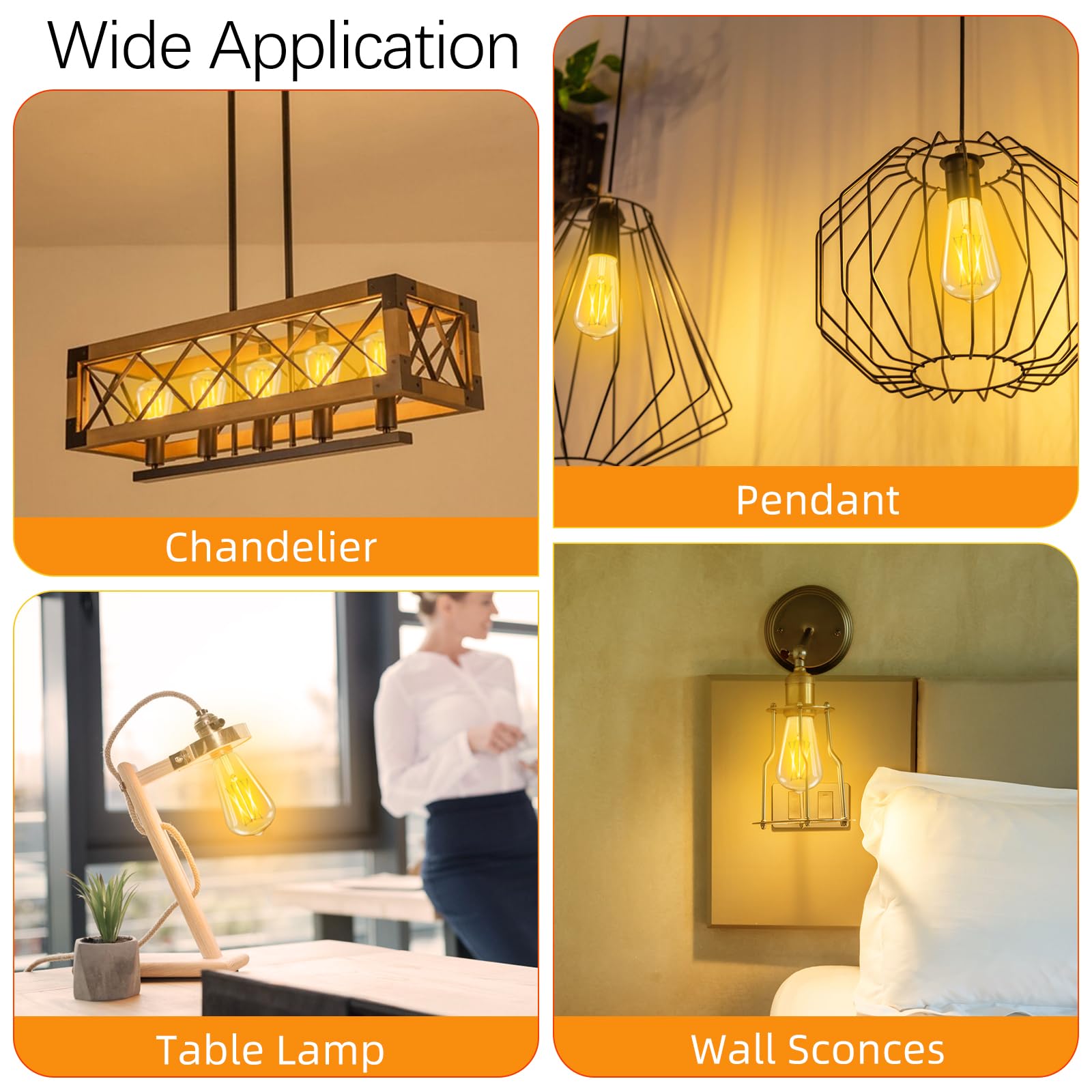 - Versatile and Easy to Use: Our E26 Edison bulb fits standard medium-base fixtures and is ready to use. Perfect for pendant lights, chandeliers, vanity fixtures, wall lanterns, floor lamps, and table lamps.