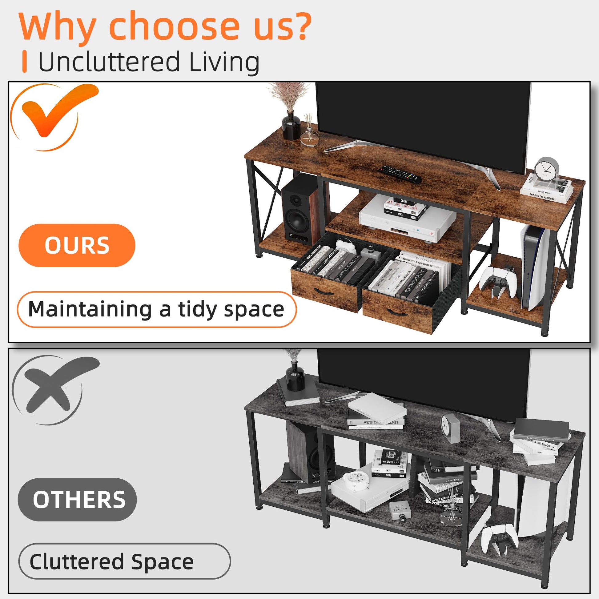 - 【Convenient 2-drawer storage】Featuring two spacious drawers, this TV stand offers a practical solution for storing and organizing various items, keeping them easily accessible yet safely out of reach of children, ensuring a clutter-free and child-friendly environment.